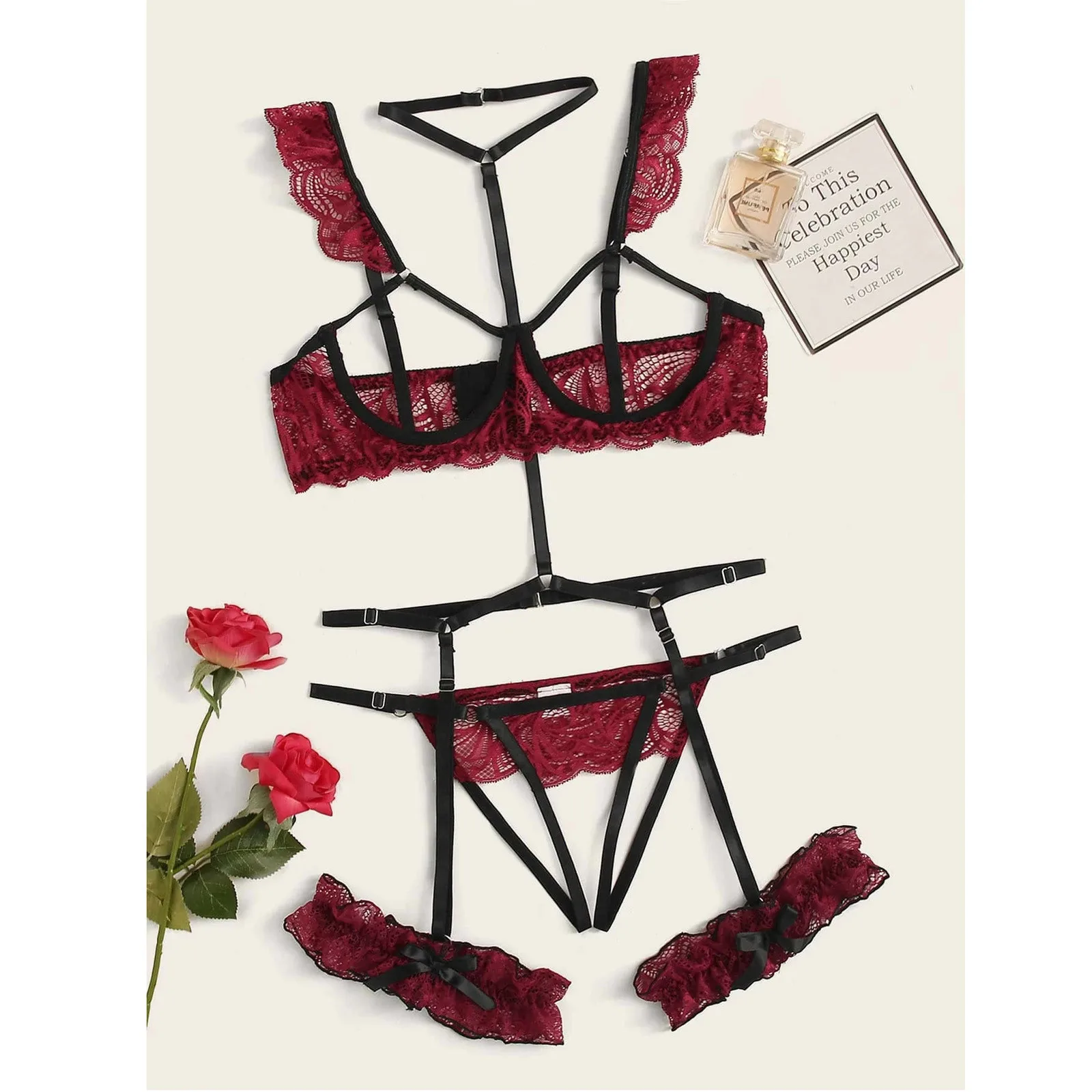 Женское нижнее белье, женское чувственное кружевное нижнее белье, нижнее белье, одежда для сна, пижама с стальными кольцами, комплект нижнего белья с подвязками, нижнее белье