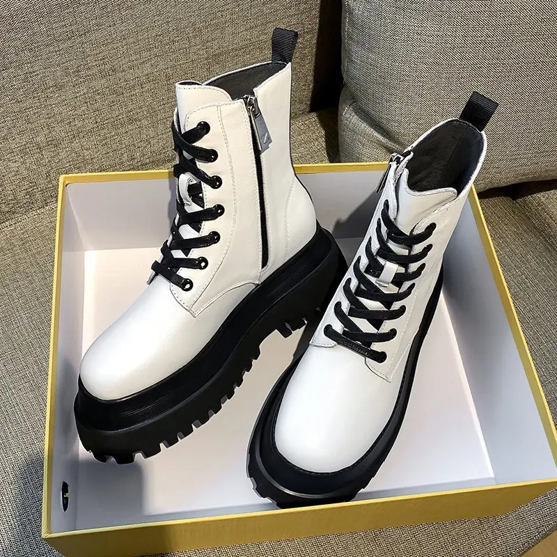 Женские осенние ботинки, белые ботинки на платформе 2021, кожаные зимние ботильоны на квадратном каблуке для женщин, Повседневная модная обувь с боковой молнией