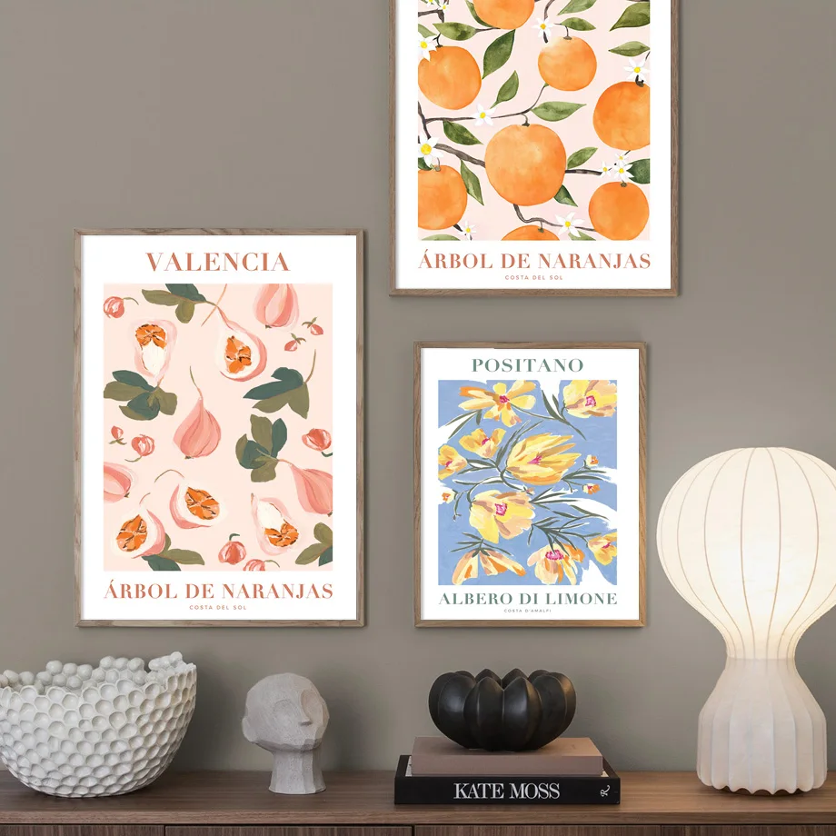Valencia Orange Positano лимон Цветы Листья стены Художественная пе...