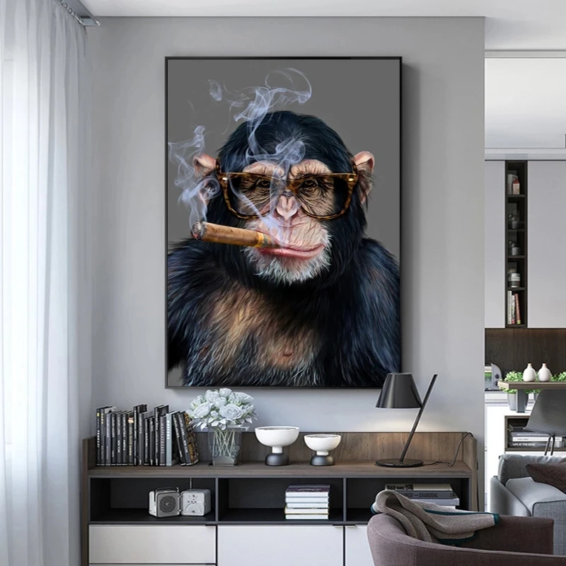 Плакат с обезьяной гориллой и курением, настенные картины для гости...