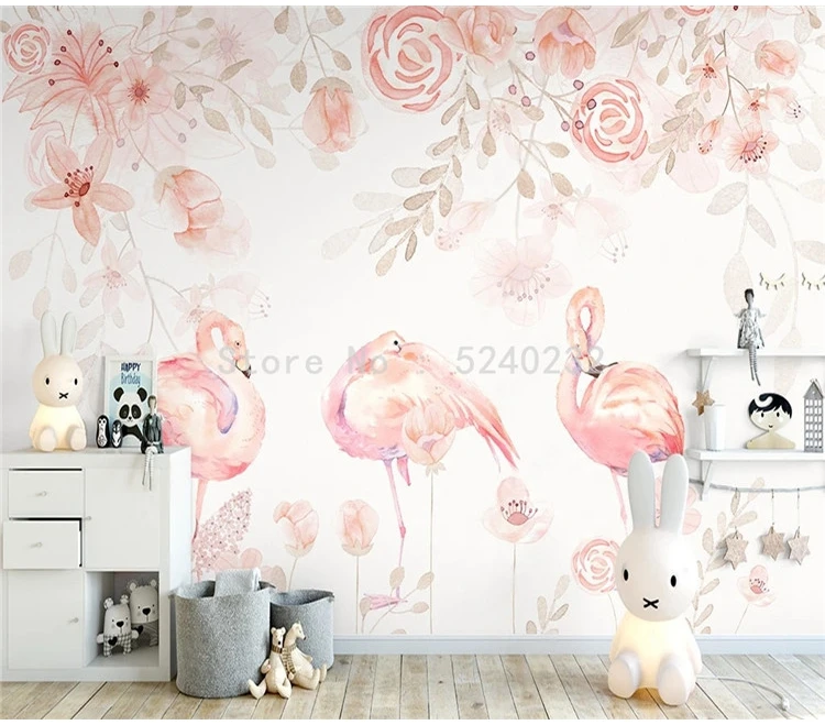 Пользовательские фото обои 3D Ручная роспись скандинавский Розовый фламинго Крытый фон настенная детская спальня Papel де Parede 3 D