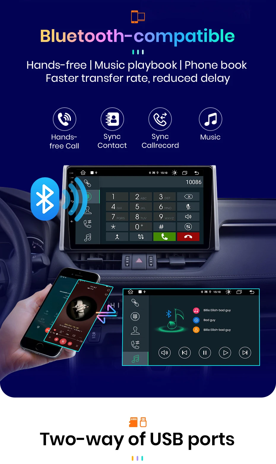 Оснащенный двумя usb-портами, подходит для ежедневного использования в автомобиле.(Примечание: когда один usb-порт передает данные, другой может работать только для зарядки)