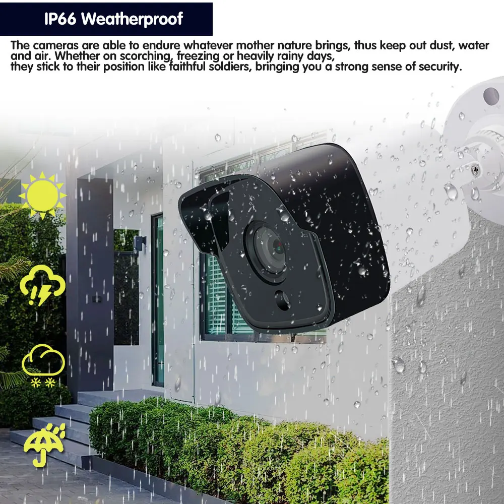 Используйте их в качестве наружных камер или внутренних камер, так как они построены жестко, чтобы выдерживать любую погоду: дождь, снег, пыль и жаркие дни. С защитой от атмосферных воздействий IP66 и кабелями, проходящими через подставку для дополнительной защиты, гарантируем, что вы сможете ответить на их производительность, день в день. Наша камера имеет сверхпрочный металлический корпус, профессиональный IP66, устойчивый к атмосферным воздействиям, обеспечивая стабильную производительность как внутри, так и снаружи.