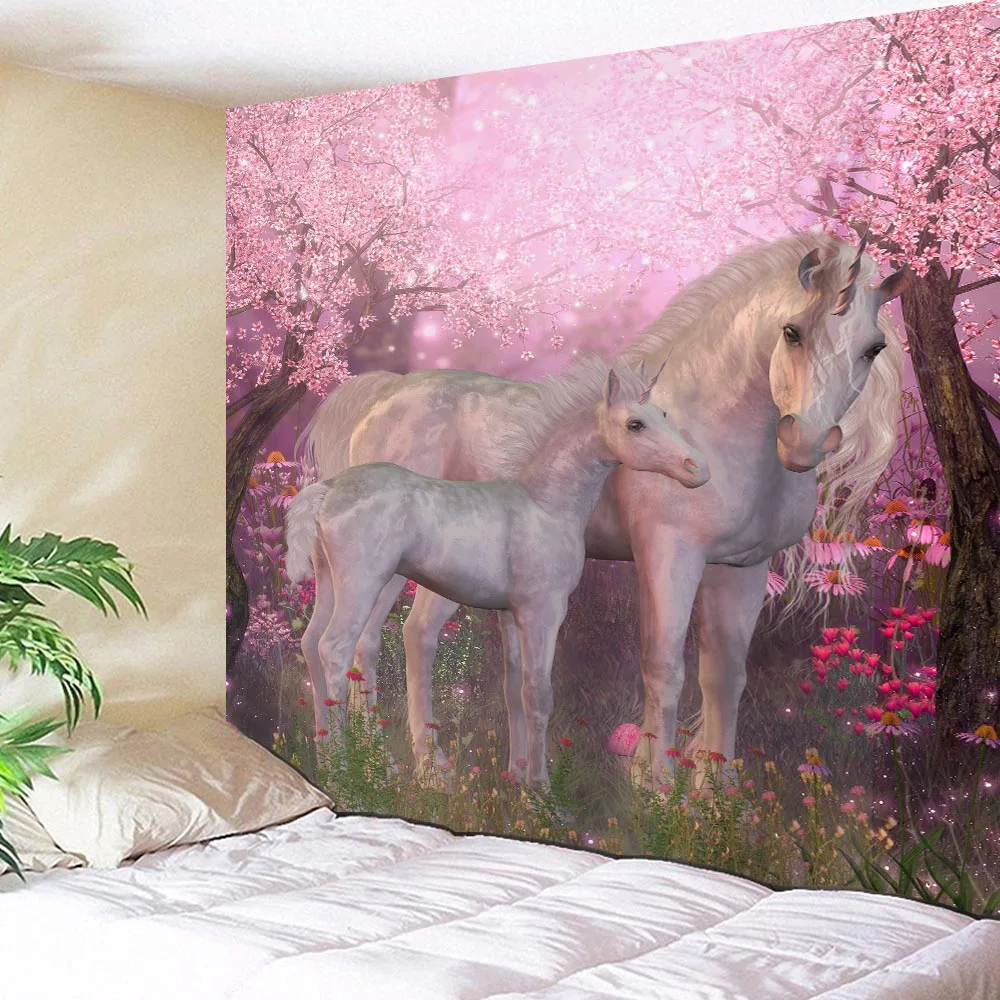 SepYue гобелен с изображением животных лошади цветущей вишни, Настенный декор для комнаты в стиле хиппи, спальни, занавеска, фон, одеяло, балдахин