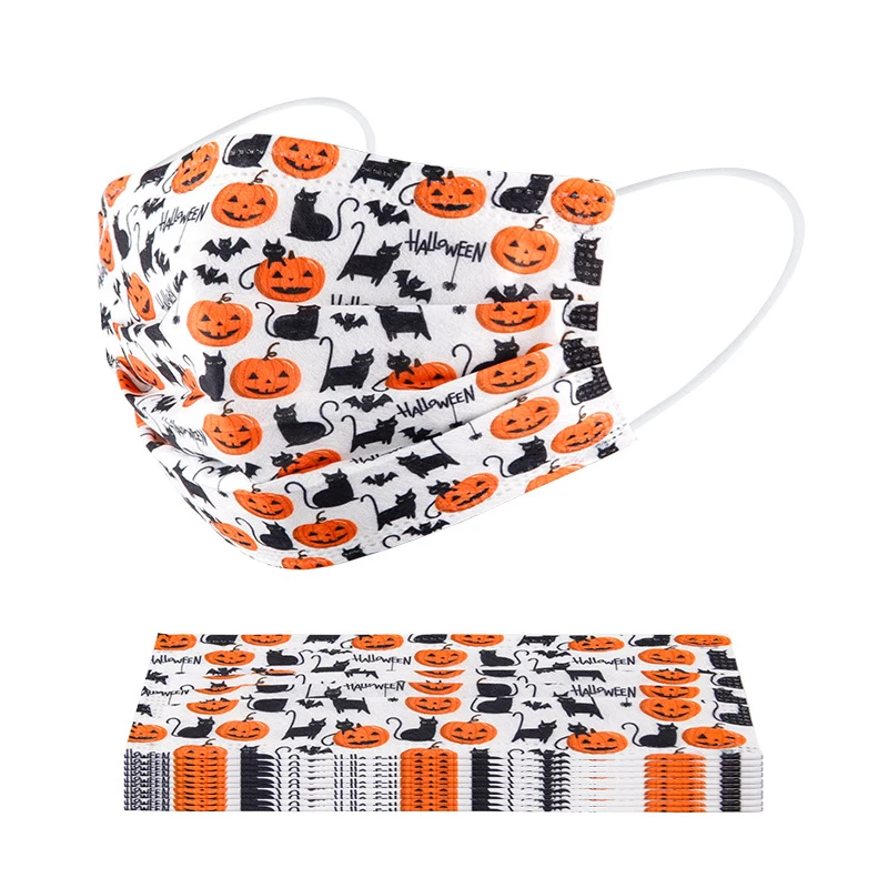 Одноразовая маска для взрослых, ткань с принтом тыквы на Хэллоуин, респираторные маски для лица, Пылезащитная маска, маскарадные маски