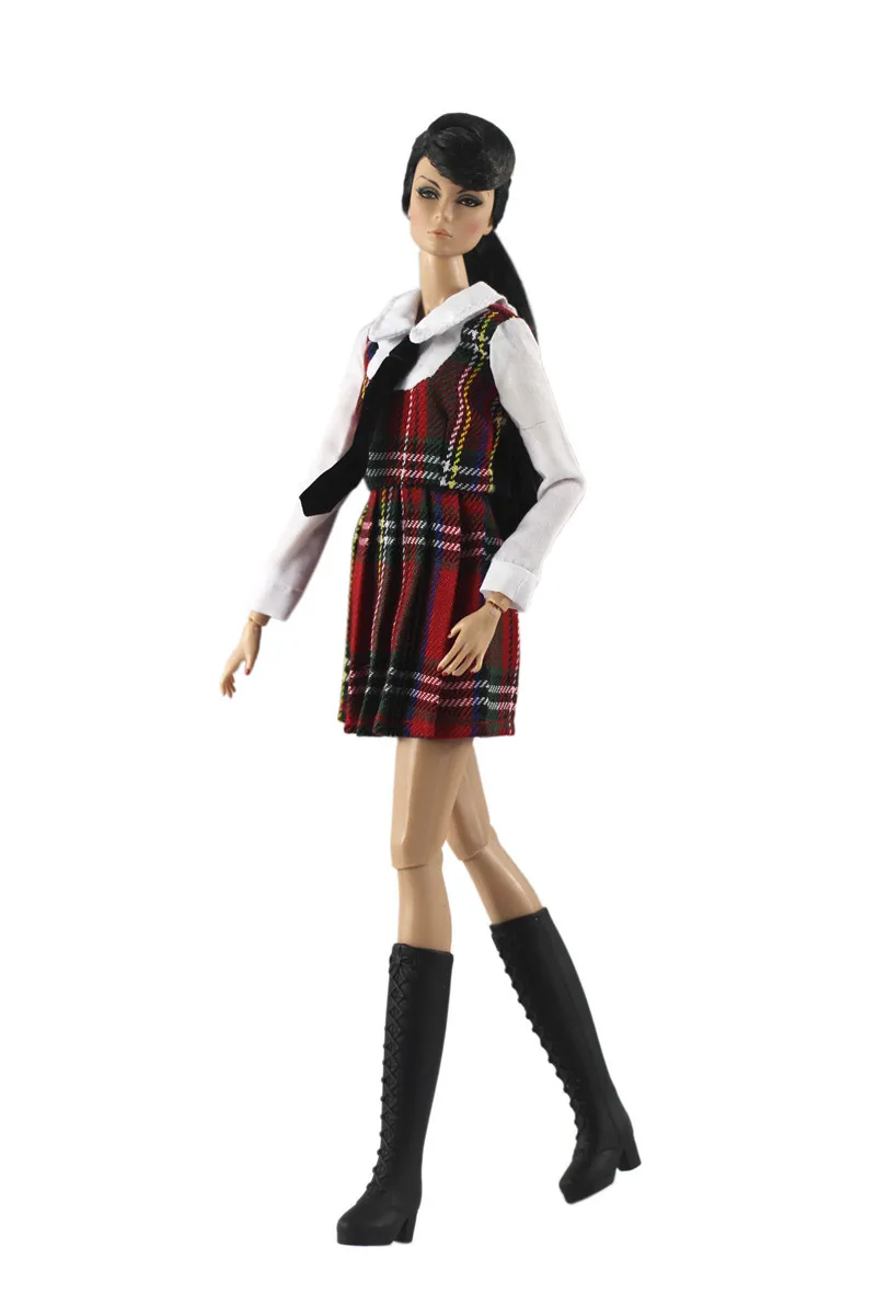 Платье для куклы, 1 шт., модная школьная форма с длинными рукавами и галстуком, повседневная одежда, юбка для кукол Барби, аксессуары для кукол, игрушки