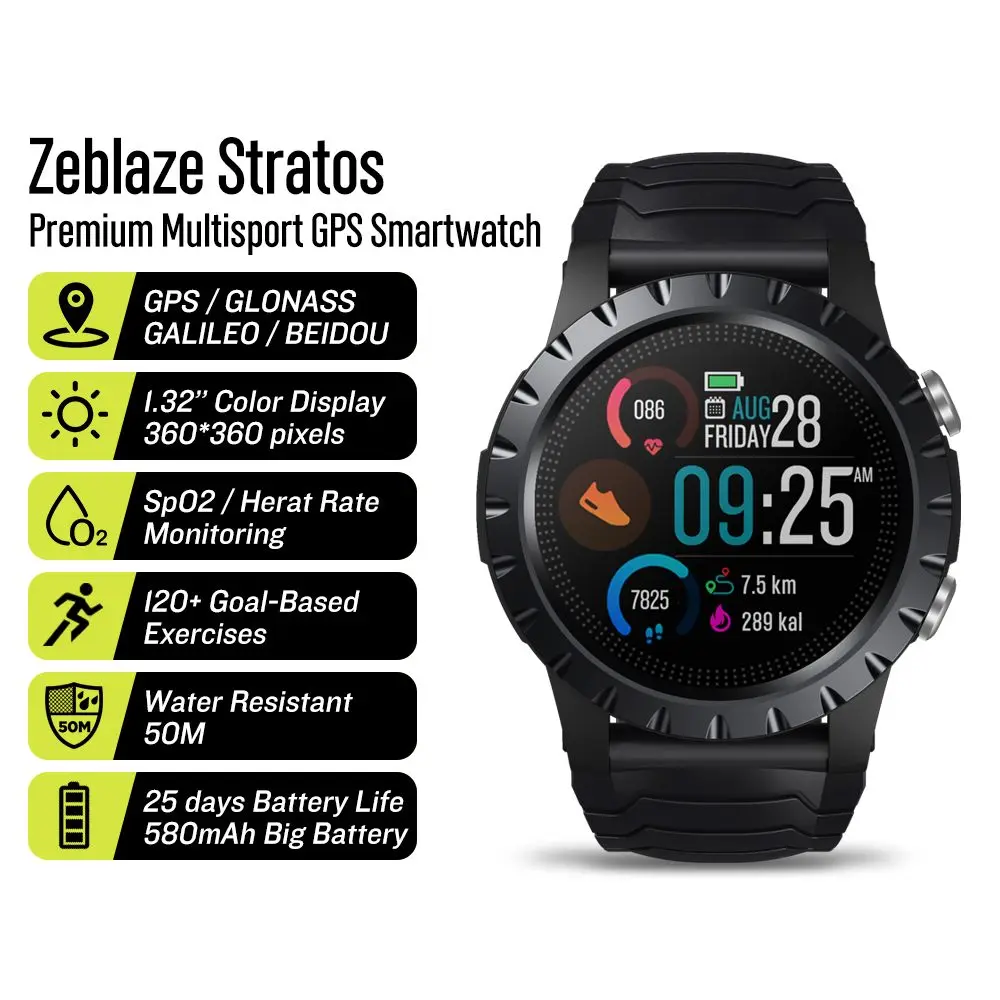 Смарт-часы Zeblaze Stratos GPS, встроенные 4 спутника, 3 режима, GPS сердцеSpO2VO2maxстресс, Время работы батареи 25 дней, GPS Смарт-часы для мужчин и женщин