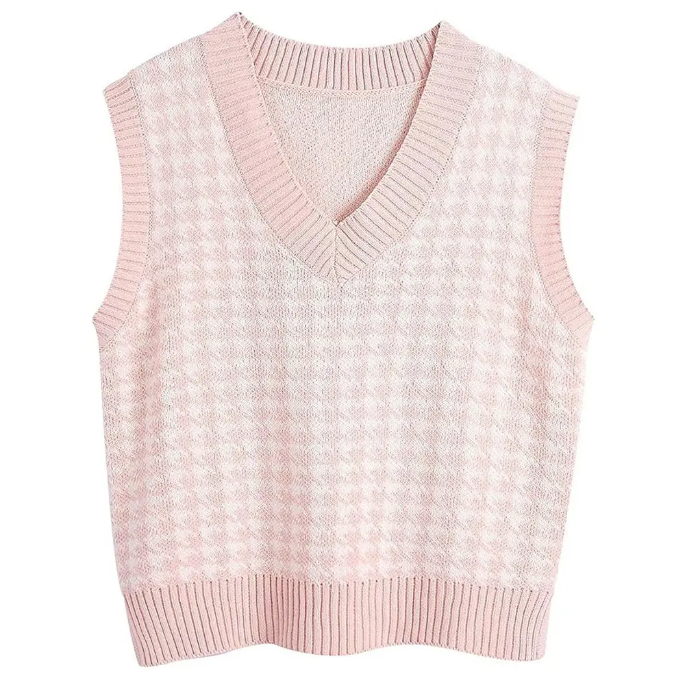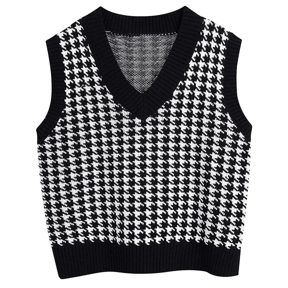Жилет с рисунком гусиной лапки, Женский вязаный жилет, Осенний Своб...