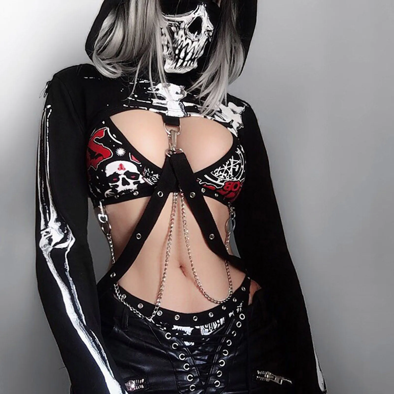 Женский топ с капюшоном InstaHot, черный укороченный топ с принтом ...