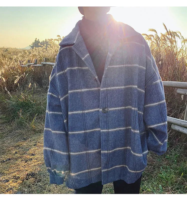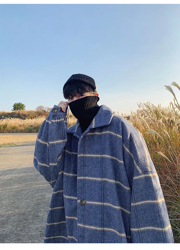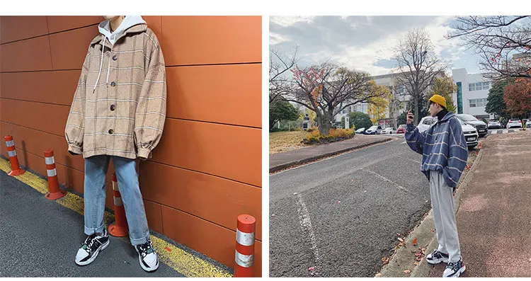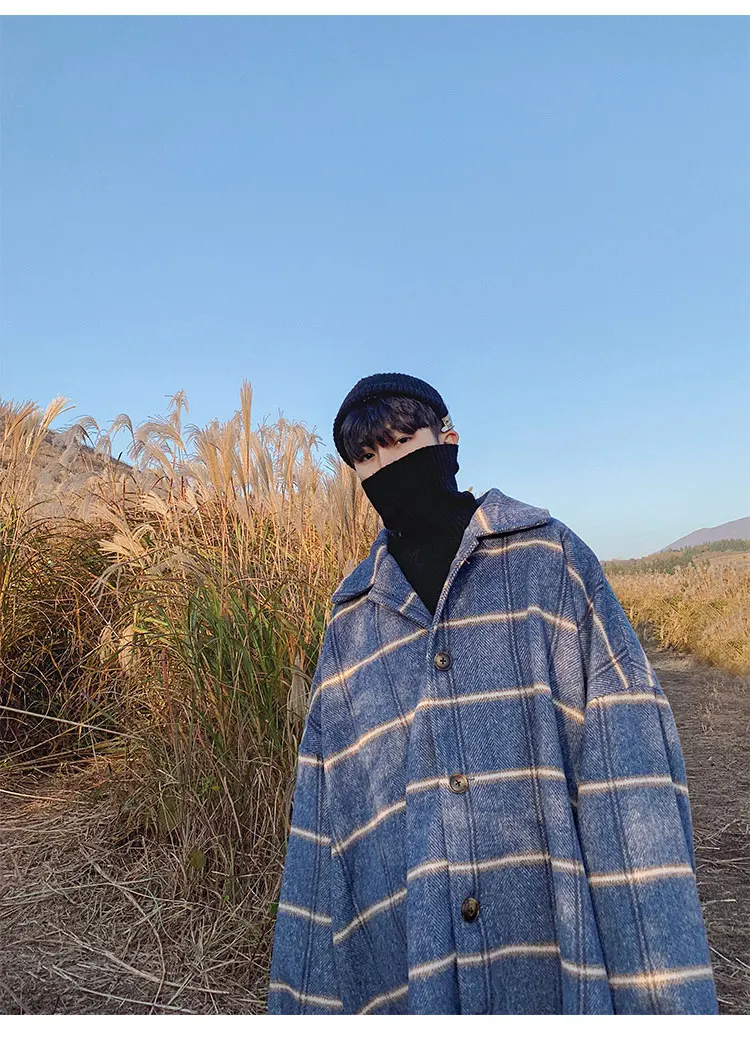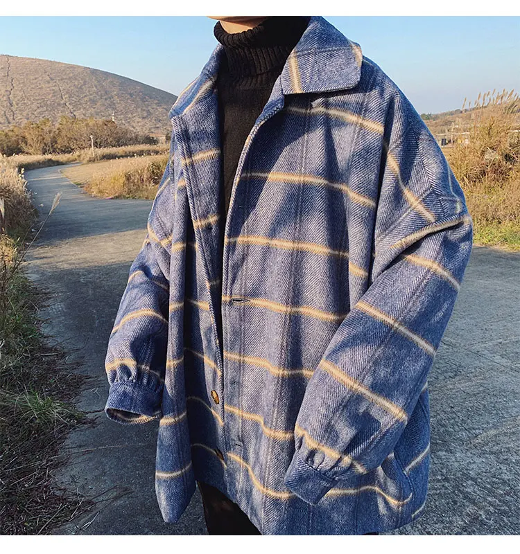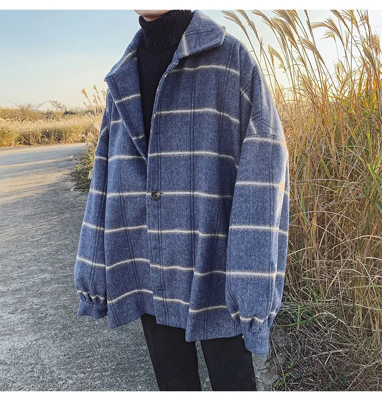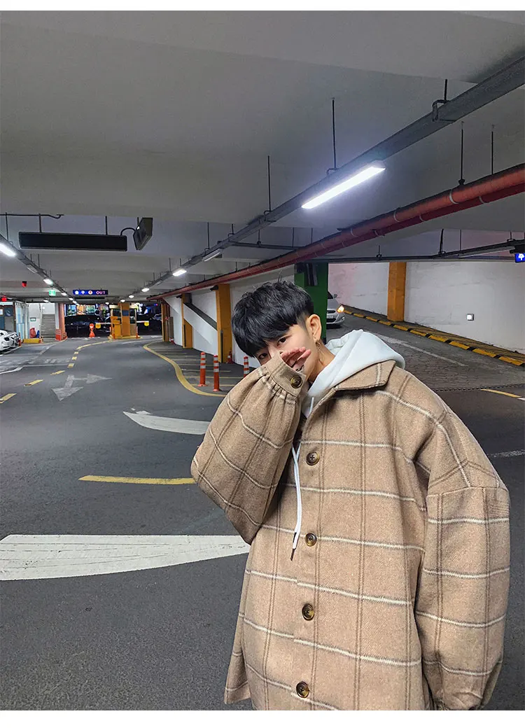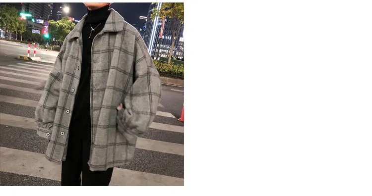 Куртка мужская шерстяная в клетку, уличная ветровка в стиле Харадзюку, большие размеры, пальто в Корейском стиле, 2021