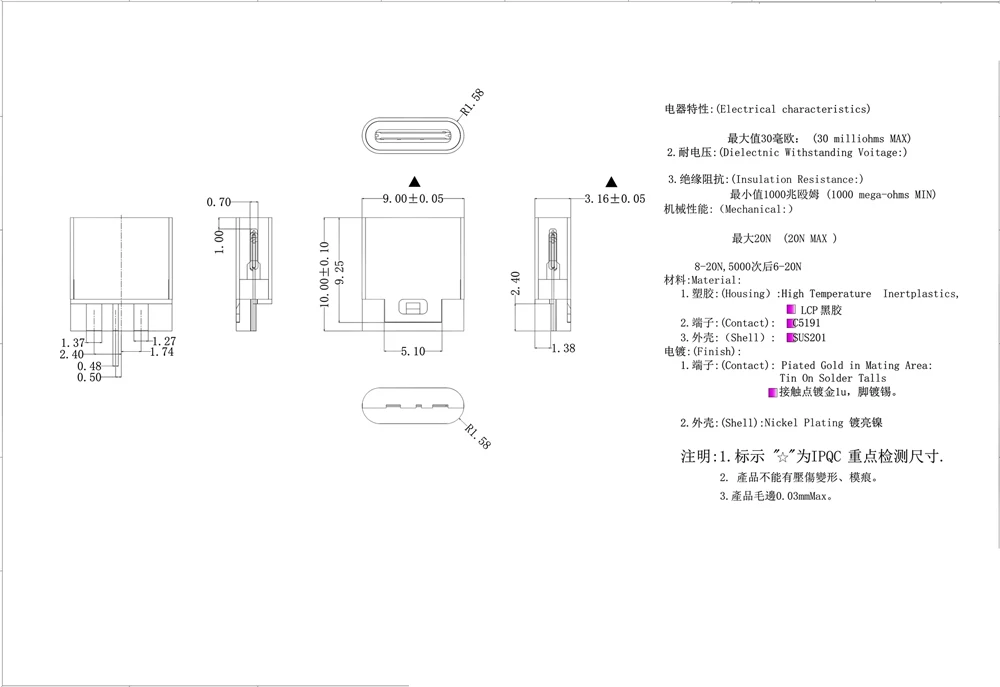 Универсальный 24-контактный разъем Micro USB 3,1, длина 0,8, 9,3 по...