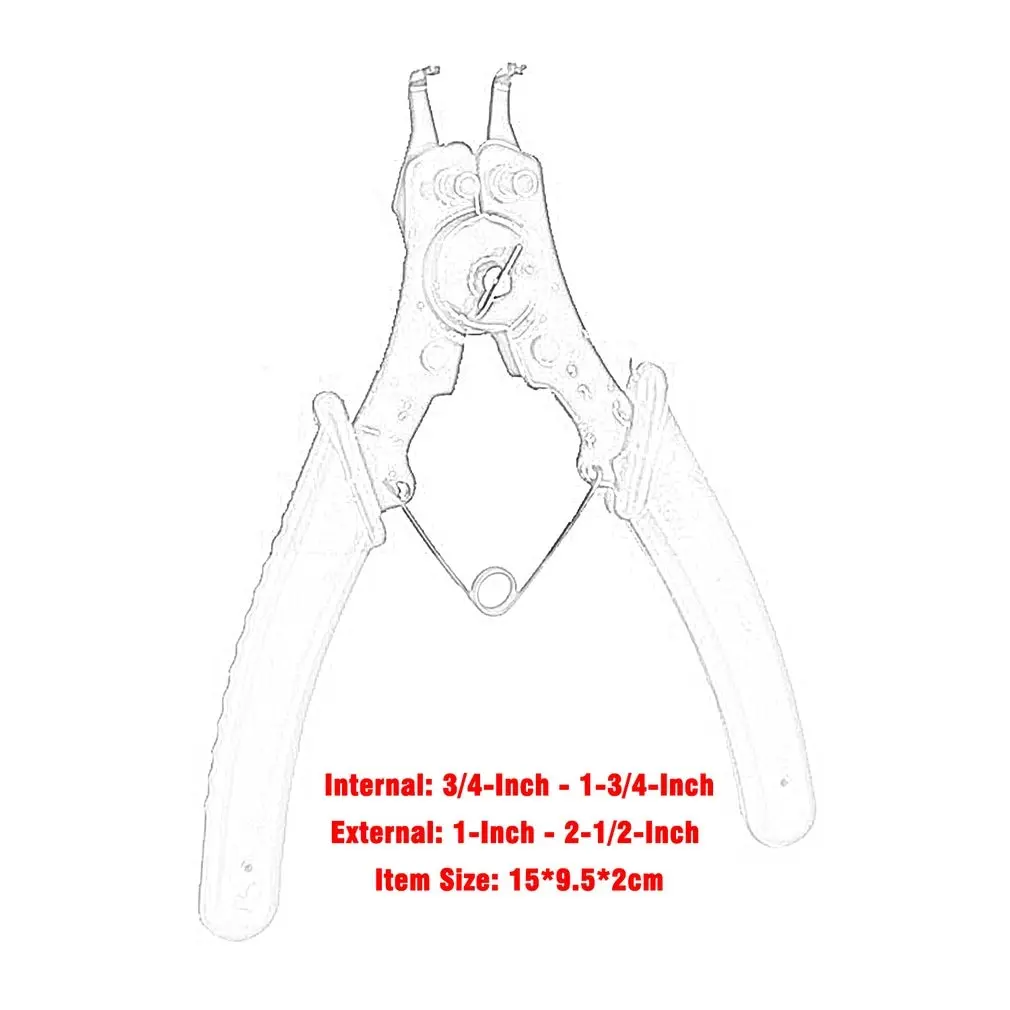 4-в-1 стопорных колец плоскогубцы Набор «сделай сам» для стопорных колец, Комбинации клипса ювелирные изделия плоскогубцами рессорной серьгой внутренних и внешних клещи для снятия пружинного кольца Особенности:Кованая, Термообработанная сталь, прочная и прочная.Нескользящая ручка с покрытием для удобного и надежного захвата.Точные наконечники с черным оксидом.Идеально подходит для мастерской, DIY, домашнего инструмента, Плотников и т. д.Компактный и легкий, портативный для переноски. Описание:Быстро и легко меняет головки.Для пользователя с внутренними и внешними зажимными кольцами.Многофункциональность и экономичность. Характеристики:Материал: ПВХ + стальВнутренний: 3/4 дюйма-1-3/4 дюймаВнешний: 1 дюйм-2-1/2 дюймаТовар Размеры: 15*9,5*2 смЦвет: красный, желтый Посылка включает в себя:1 х плоскогубцы3 x Сменная головка Примечания:1. Из-за разницы между различными мониторами изображение может не отражать фактический цвет изделия. Мы гарантируем, что модель реального изделия не отличается от представленной на фото.2. Из-за ручного измерения и различных методов измерения, пожалуйста, допускайте отклонение на 1-3 см. Спасибо!