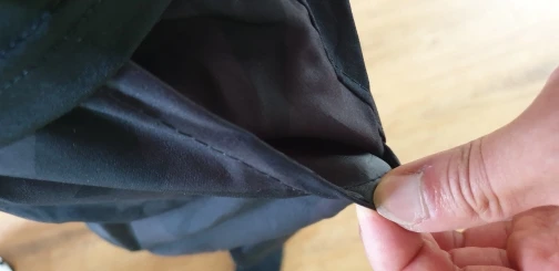 Не соответствует по внешнему виду, торчат нитки, всратые швы, размер странный, либо широкие, либо короткие. Просто какая то тоненькая тряпка, крой неудобный