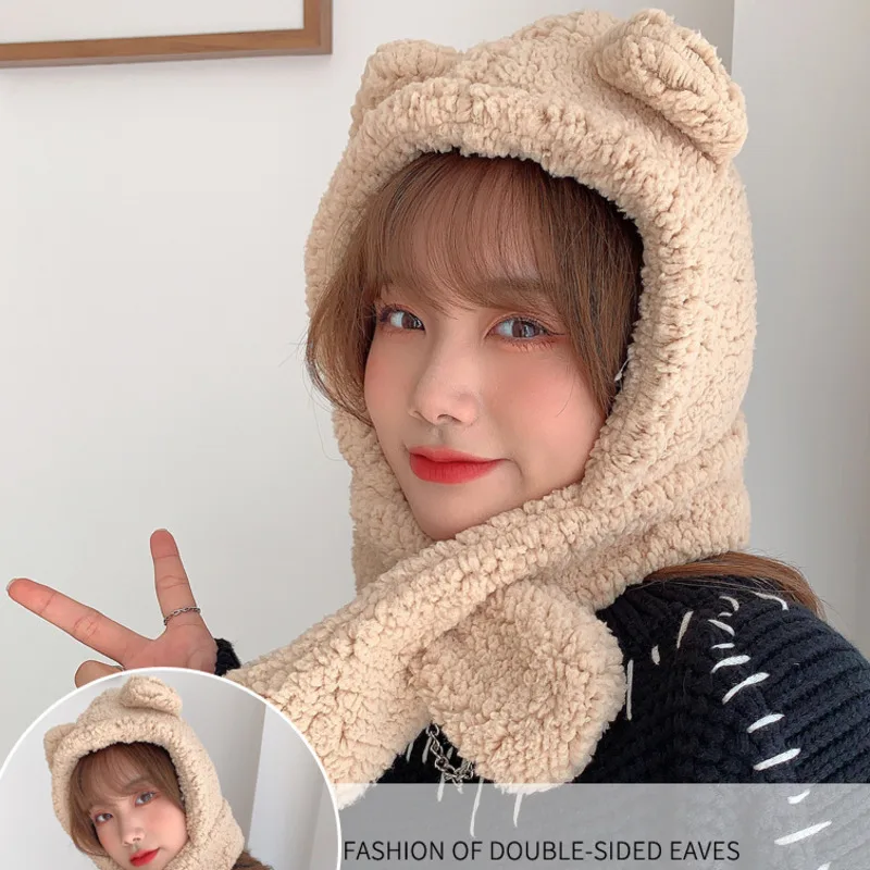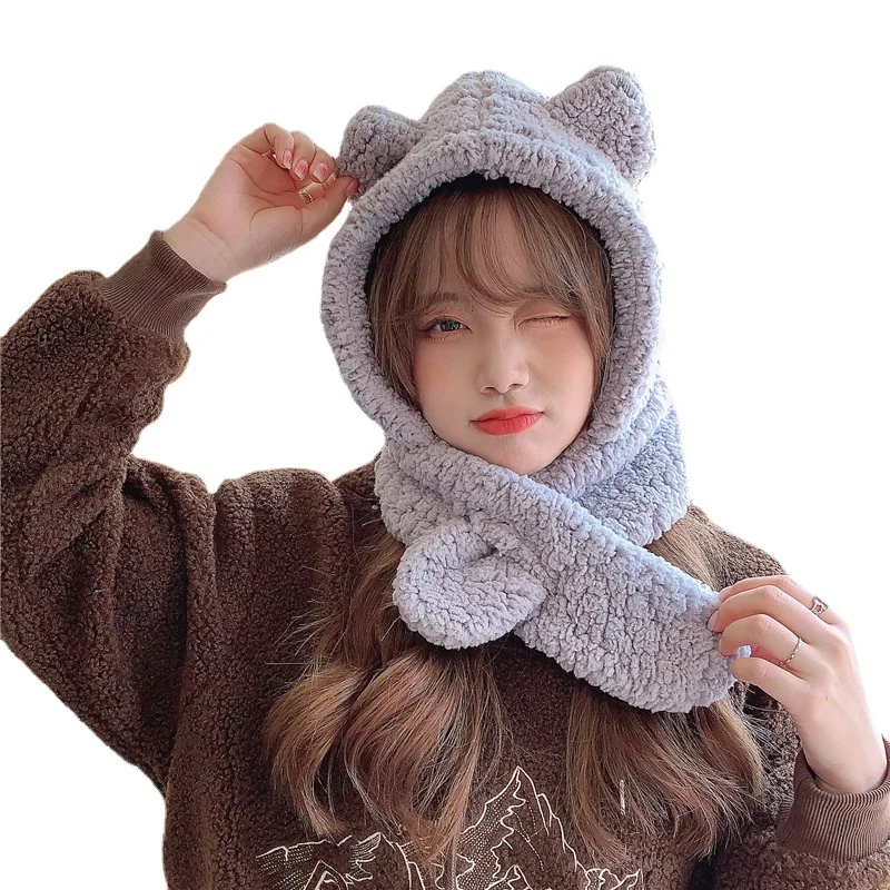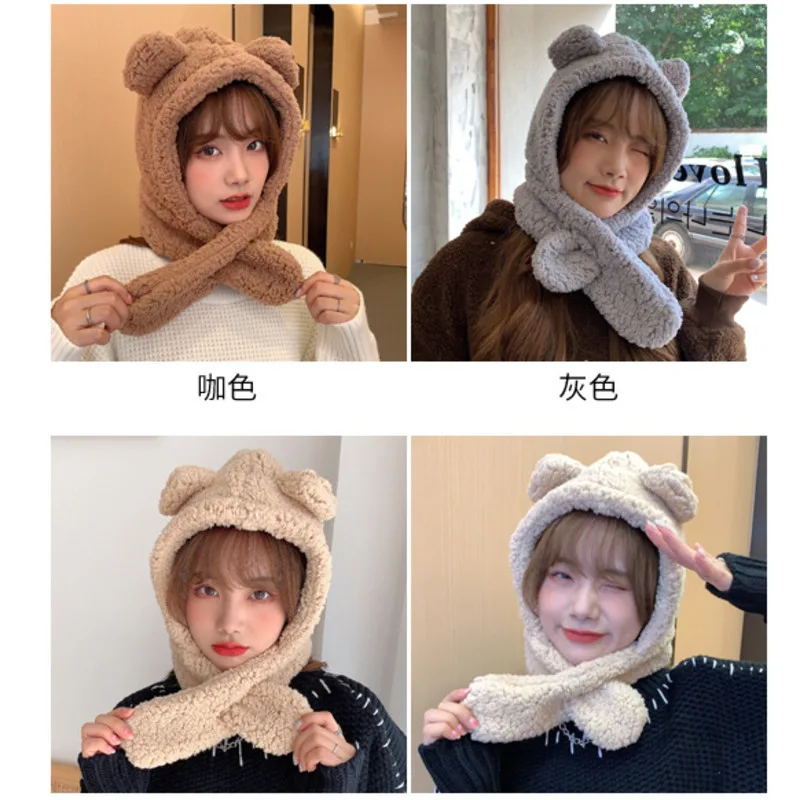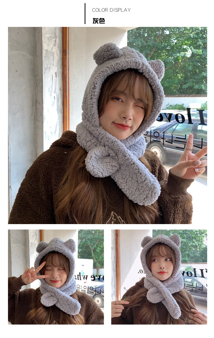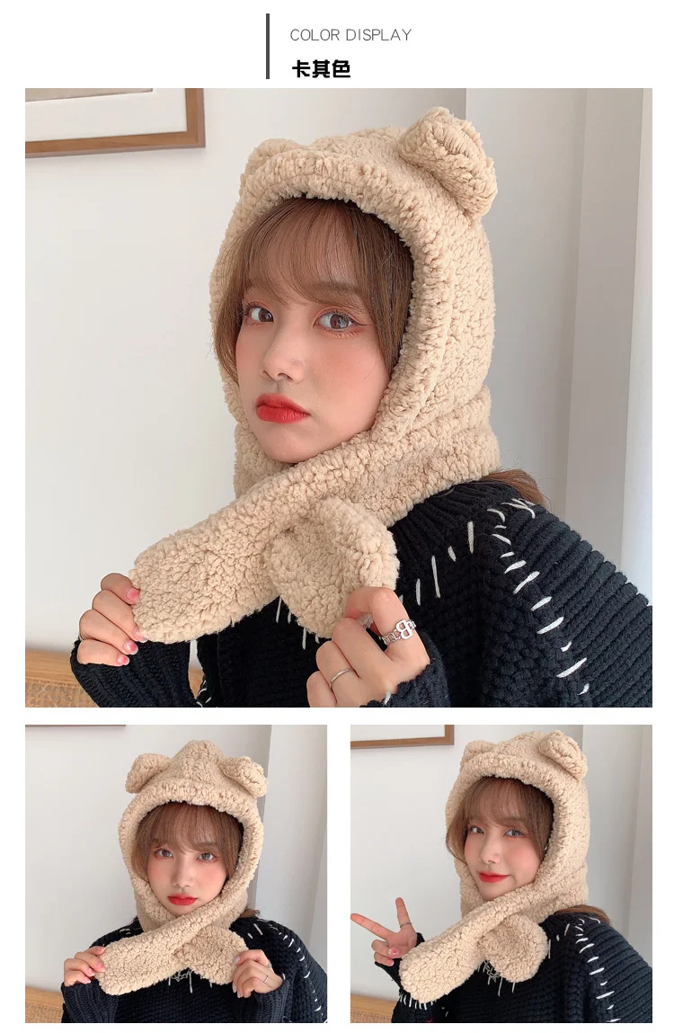 Новинка, шарфы с капюшоном с милыми медвежьими ушками, Женский утеп...