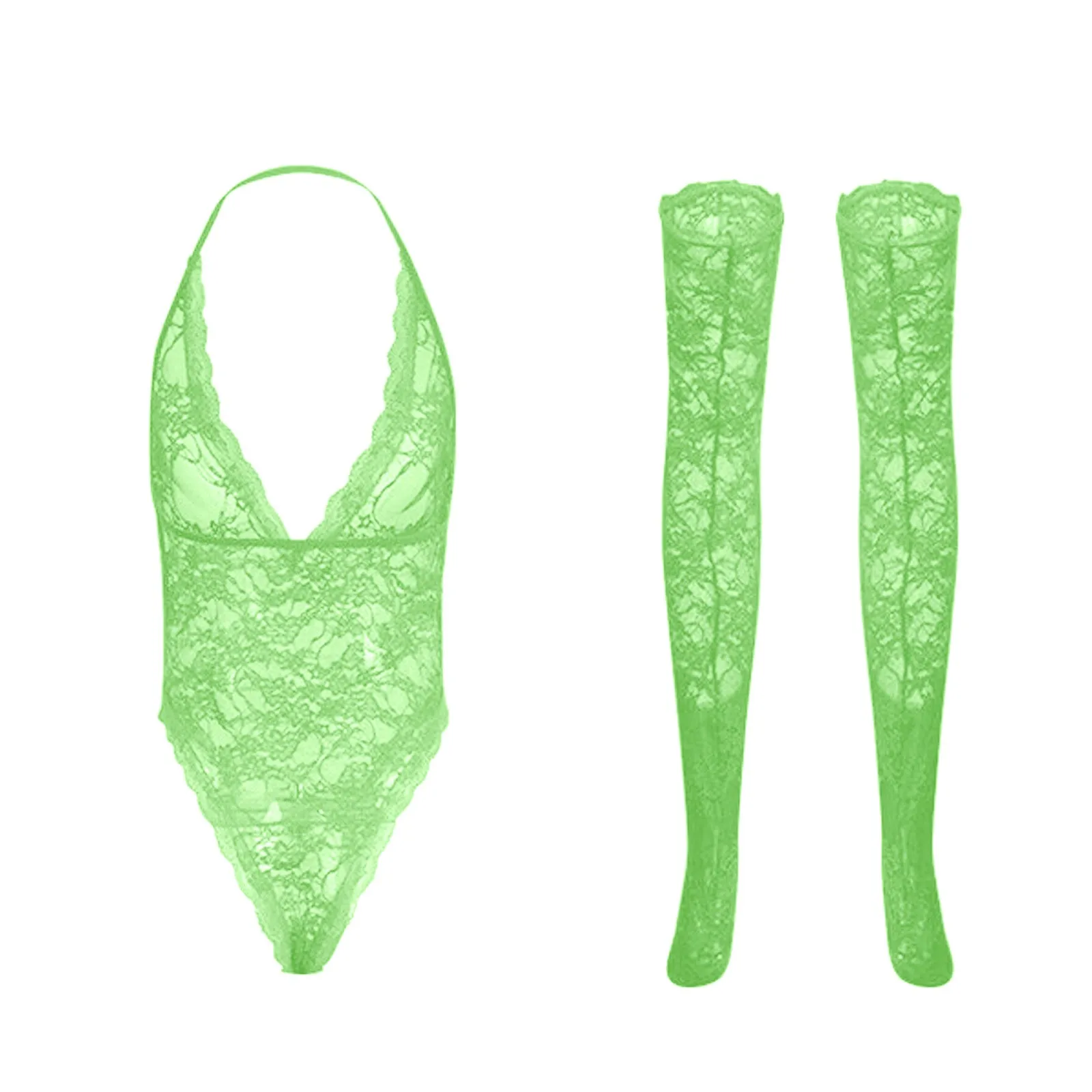 Новое Женское кружевное нижнее белье, боди с V-образным вырезом и открытой спиной, пижама костюм с чулками