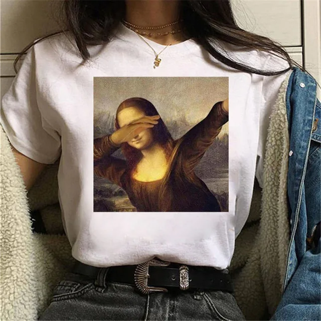 Мона Лиза маска Harajuku футболка с рисунком женские Ullzang Ретро ...
