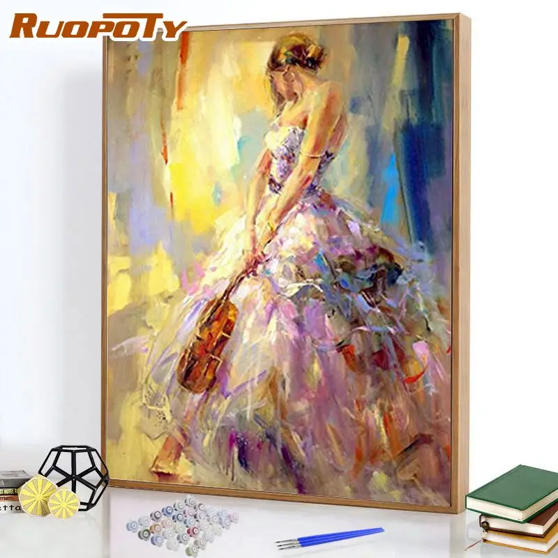 RUOPOTY картина маслом по номерам с рамкой, маленькая девочка в тра...