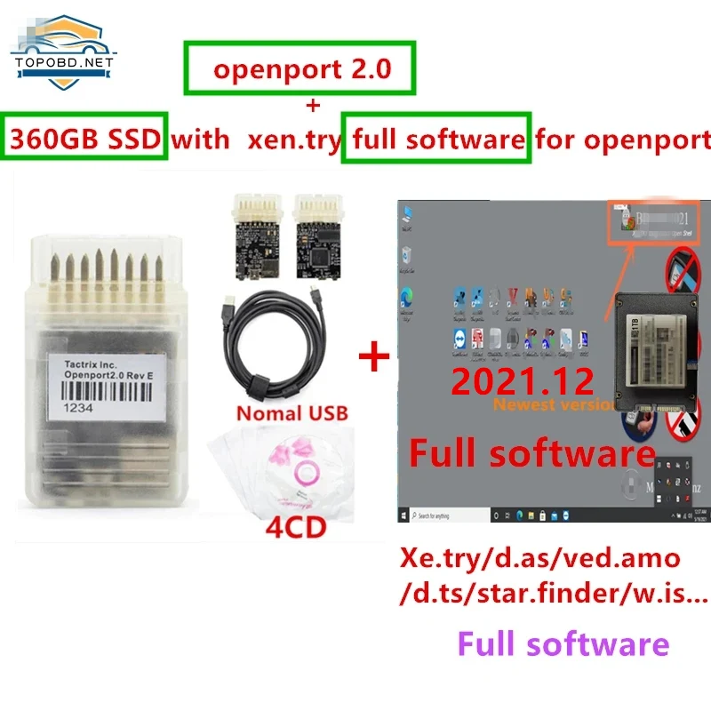 2021 Tactrix открытый порт 2,0 ECU чип тюнинг инструмент открытый порт USB 2,0 ECU Flash OBD2 с 360 ГБ SSD с 2021,12 x Входное программное обеспечение полное