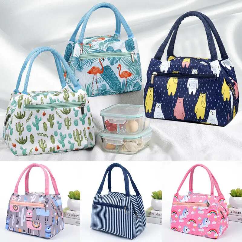 Портативный термоконтейнер для холодной пищи с изоляцией, водонепроницаемый держатель-органайзер для пикника с рисунком фламинго, кактуса