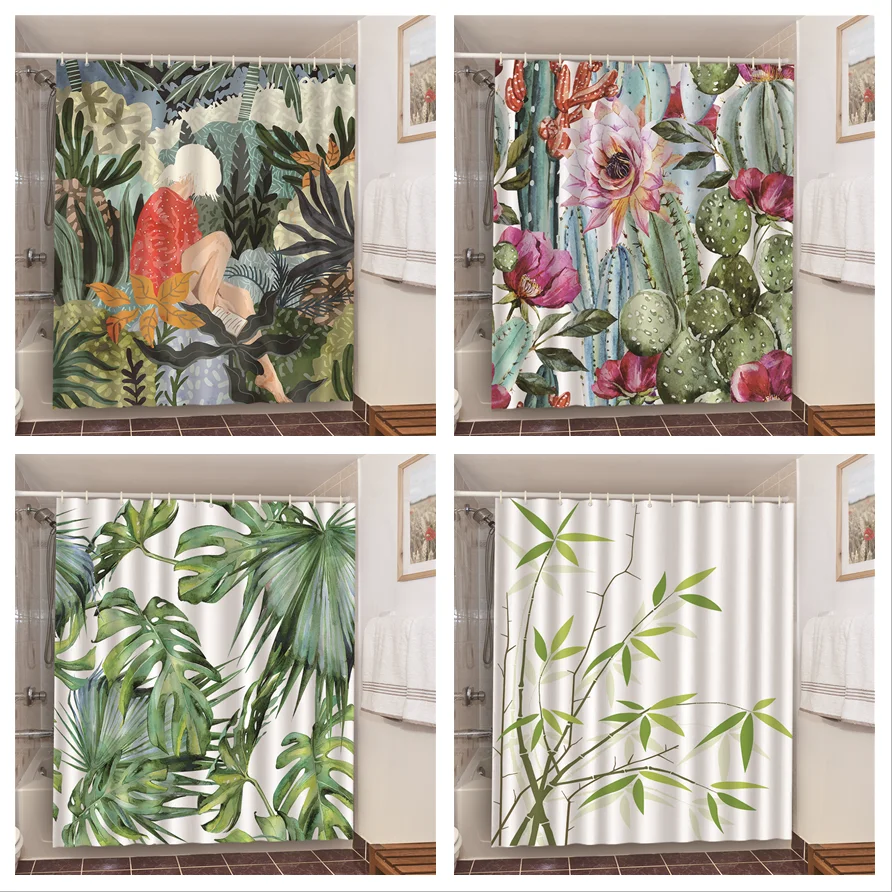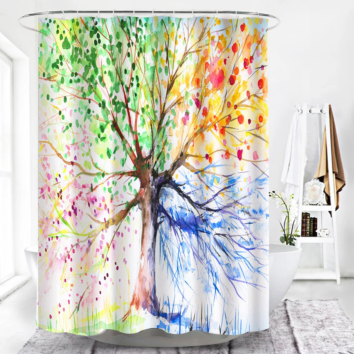 Занавеска для душа из полиэстера, высокое качество, с цветным деревом, водостойкая, ручная роспись