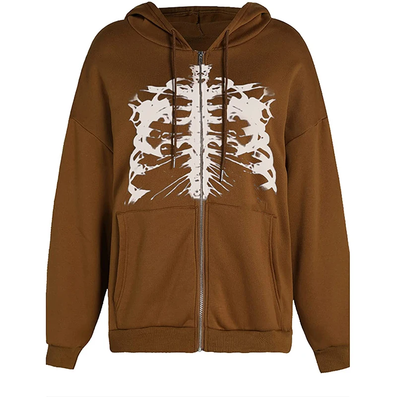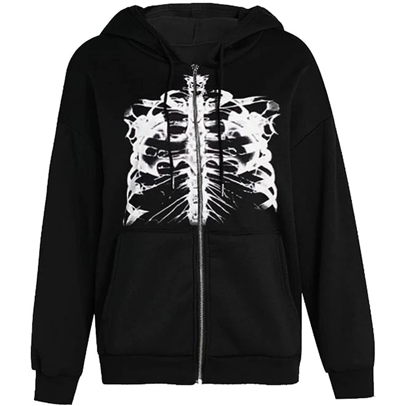 Женская куртка с принтом скелета, осенняя винтажная Толстовка в гот...