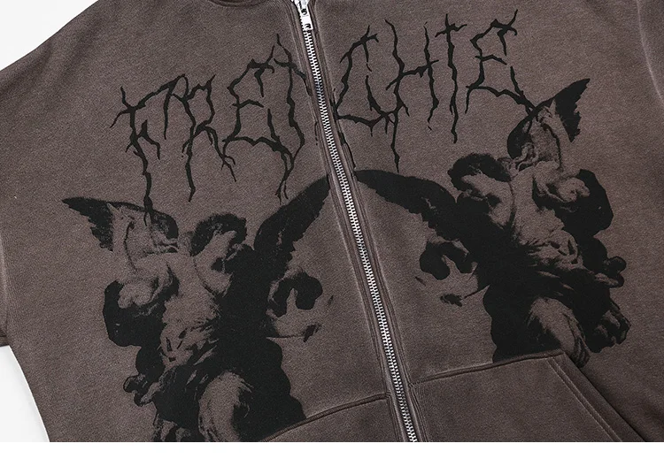 Куртка с капюшоном и принтом ангелов для мужчин и женщин, винтажная...