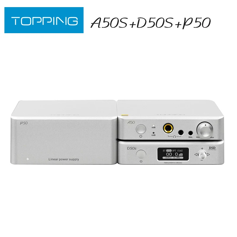 Декодер TOPPING D50S + усилитель для наушников TOPPING A50S + линейный источник питания TOPPING P50