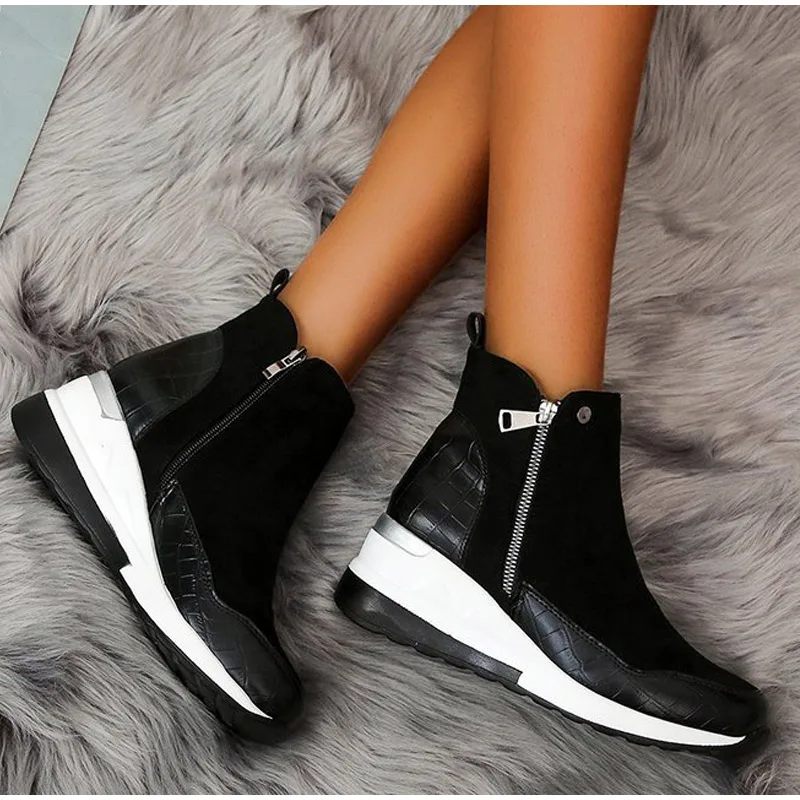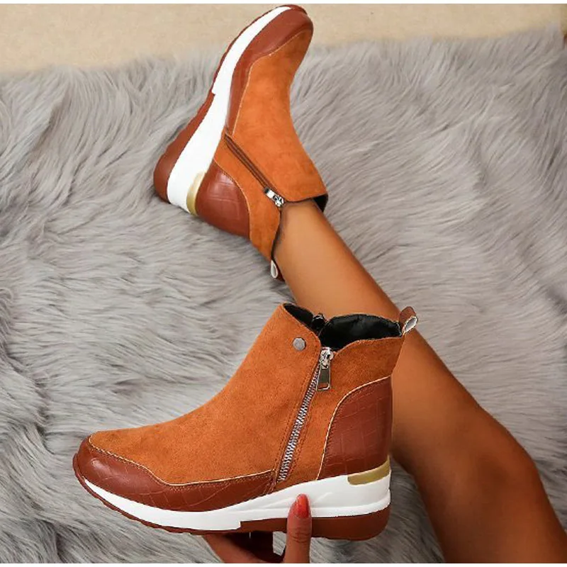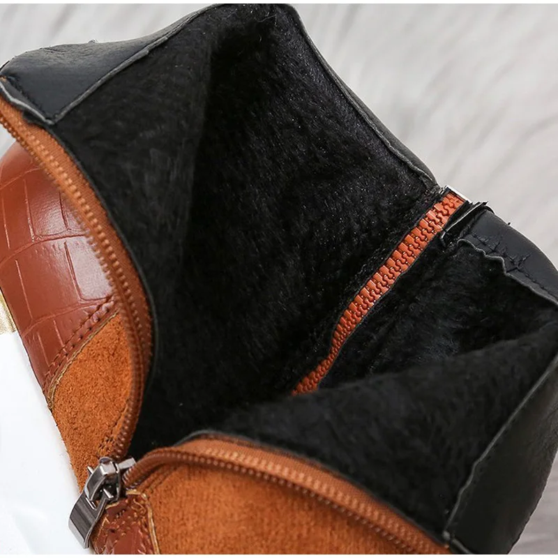 Женские ботильоны на молнии на низком каблуке, женская обувь с круглым носком, короткие ботинки из искусственной кожи, зимняя Осенняя теплая женская обувь с искусственным мехом