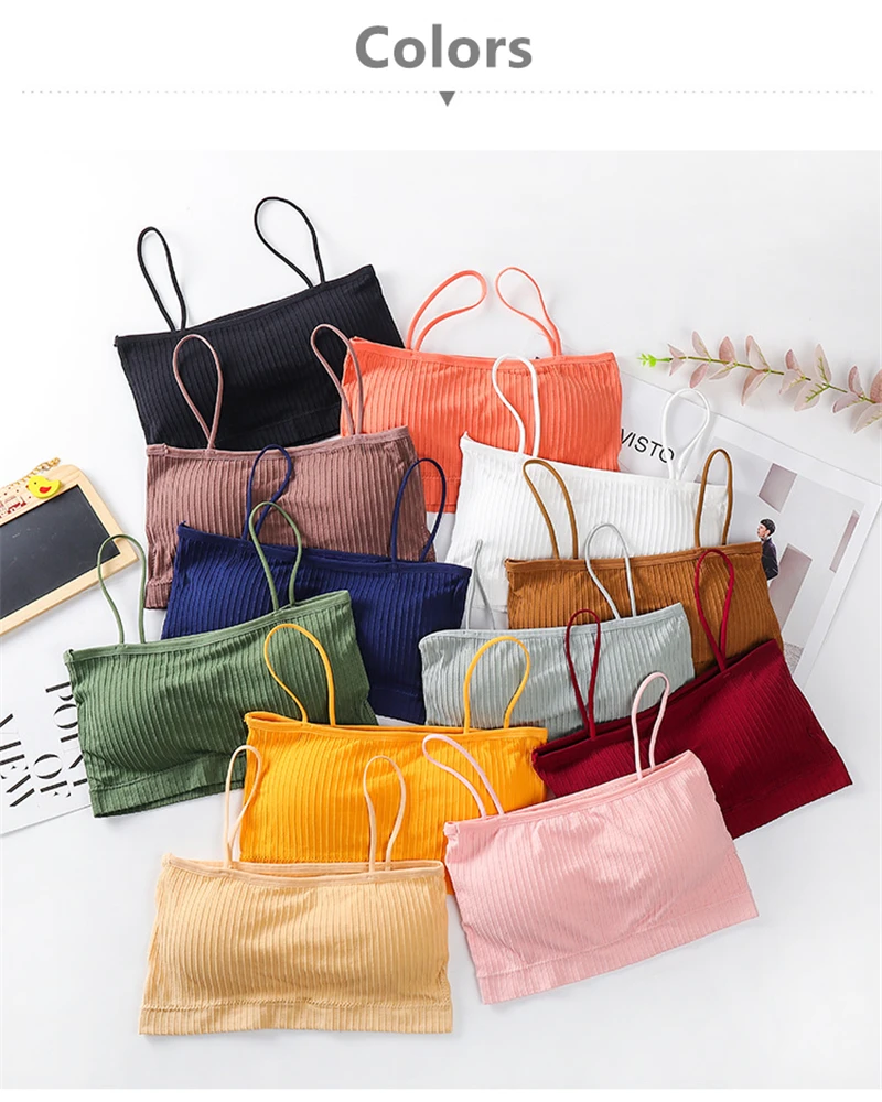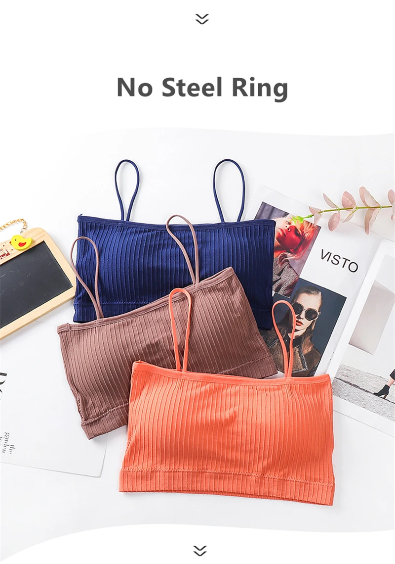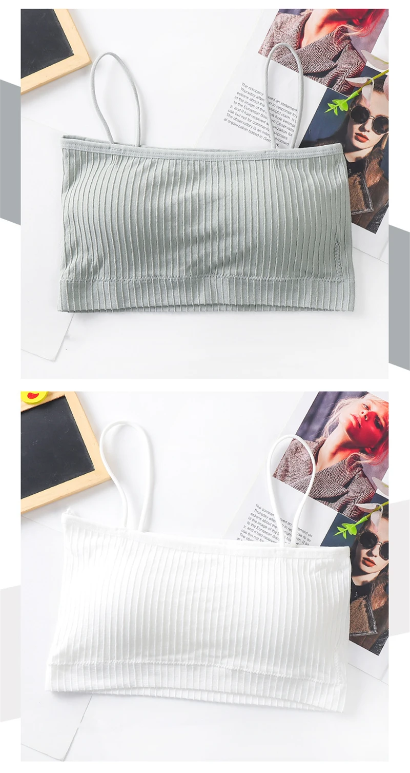Женский сексуальный укороченный топ в полоску, хлопковый бюстгальтер на бретельках, нижнее белье без стальных колец, мягкое бюстье-бандо, женское белье для студенток, кофта