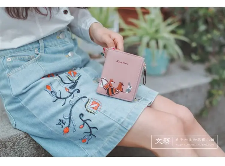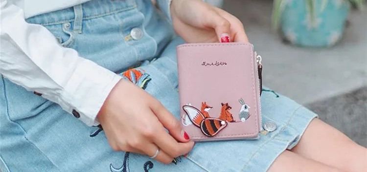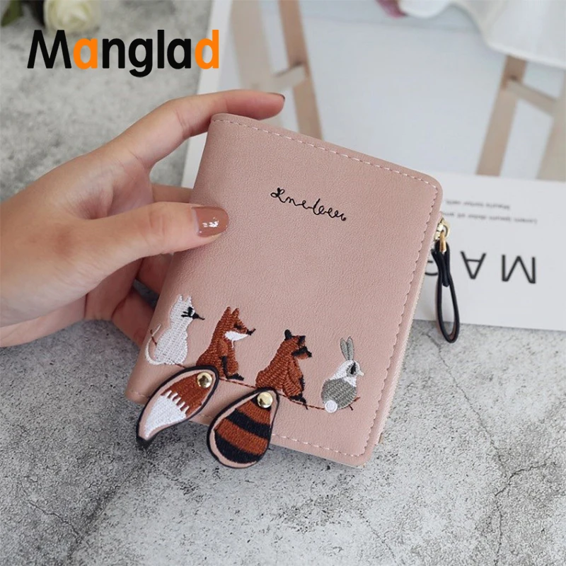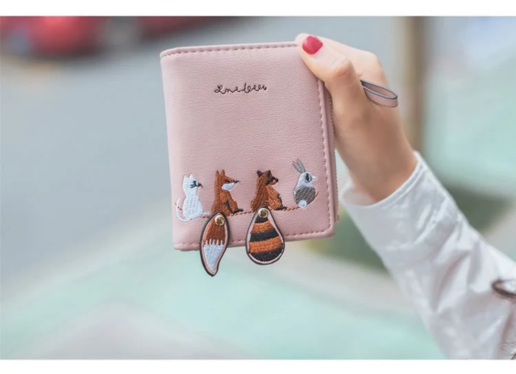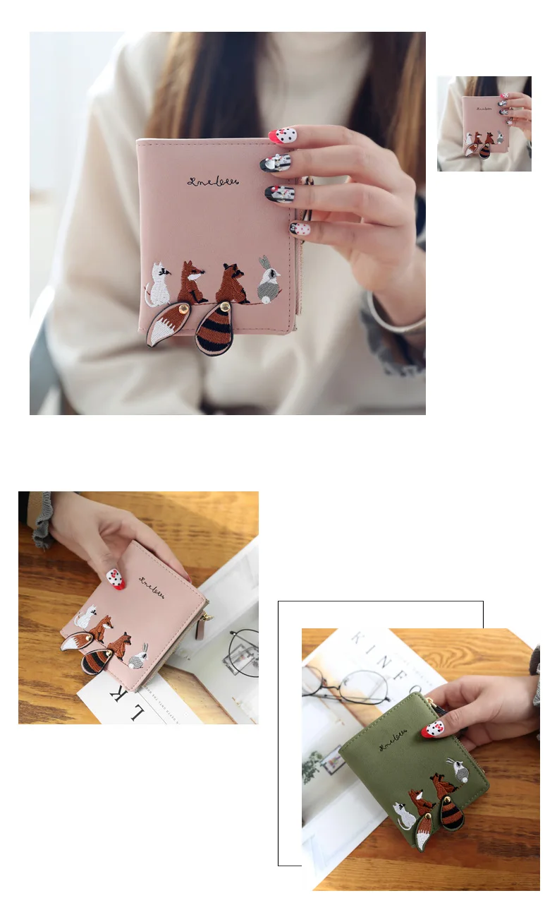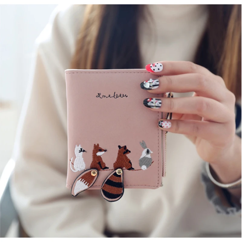 Женский кошелек с милыми мультяшными животными, короткий кожаный женский маленький кошелек для мелочи, кошелек на молнии с застежкой, держатель для карт для девочек, мини-кошельки