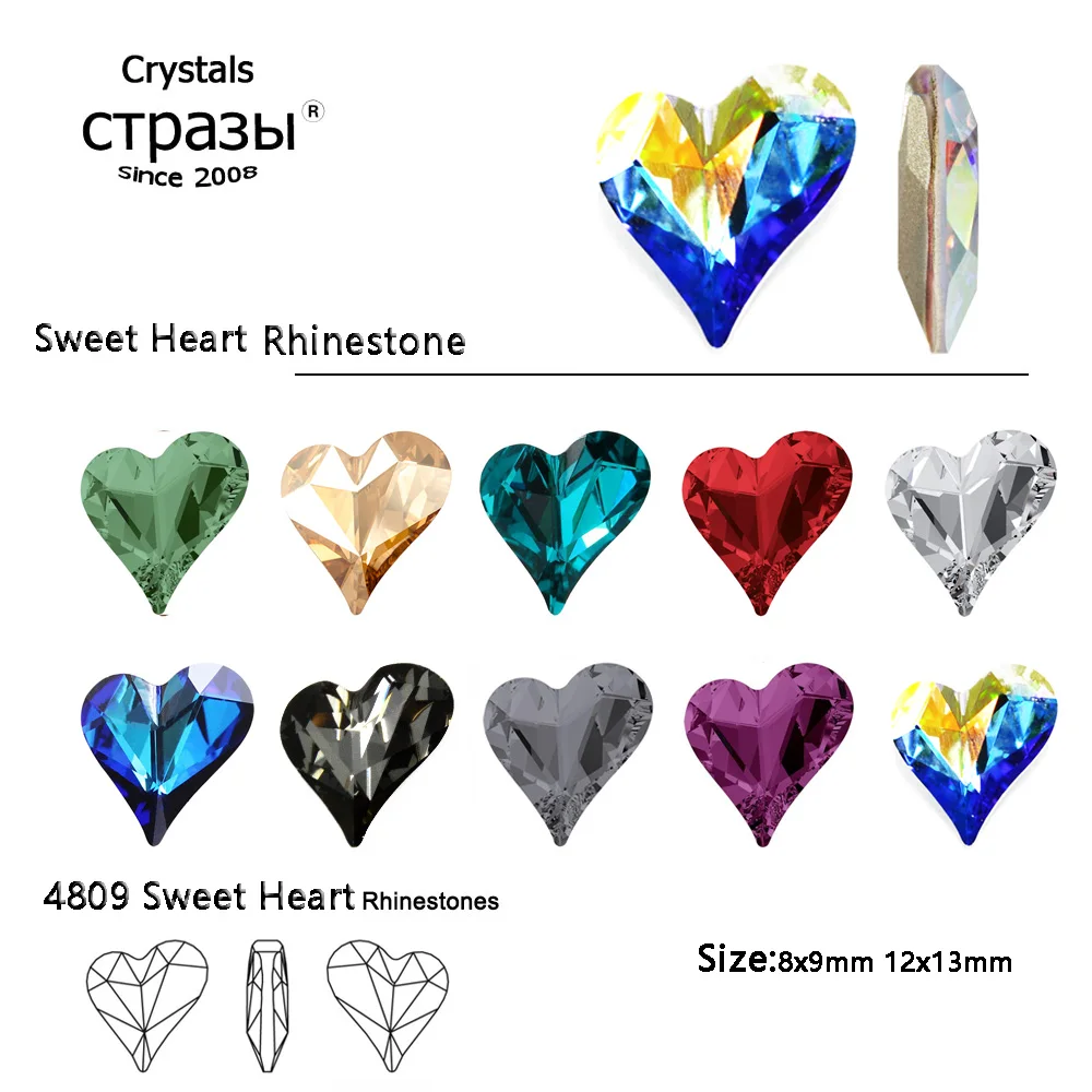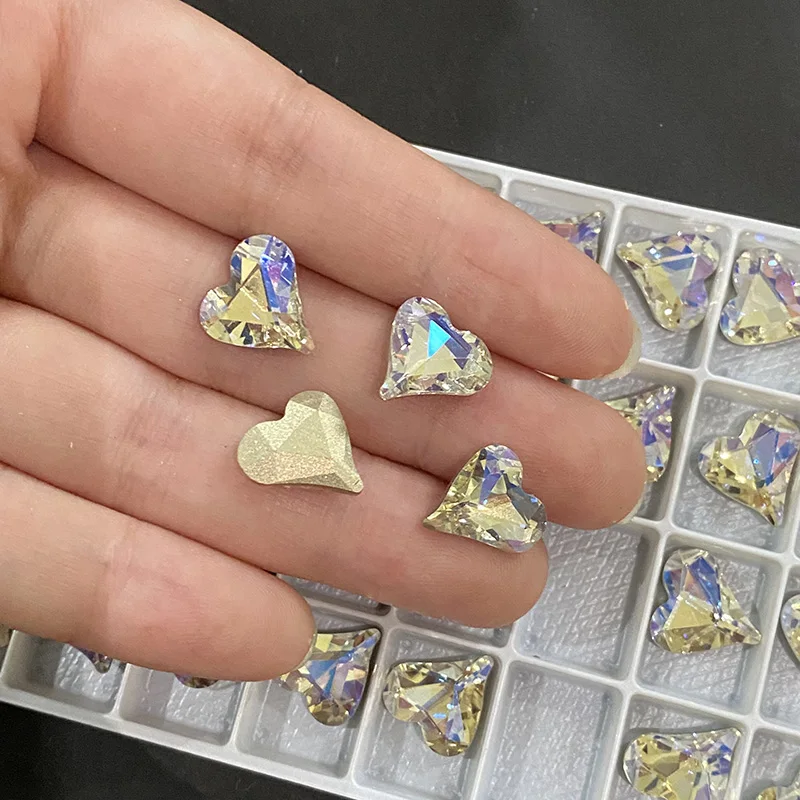 CTPA3bI Новое поступление, искусственное сердце, 10 шт., стеклянные аксессуары сделай сам, стразы, свободные бусины с орнаментом, материалы для ногтей, камни