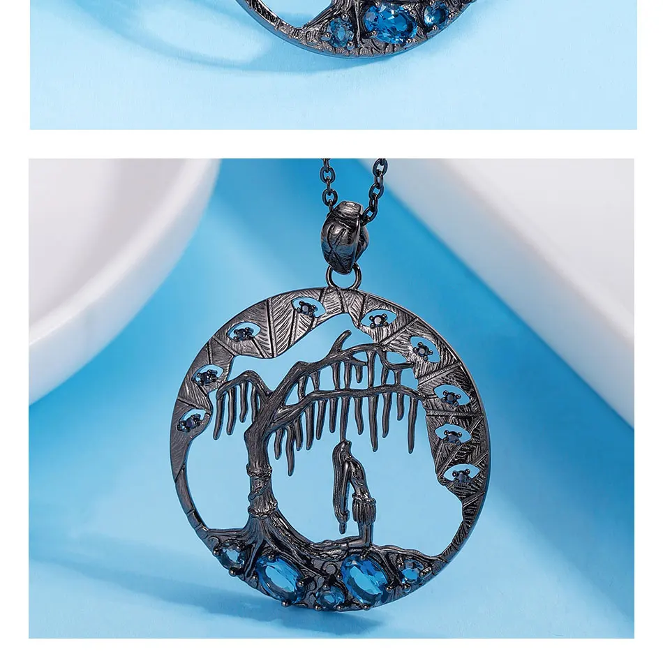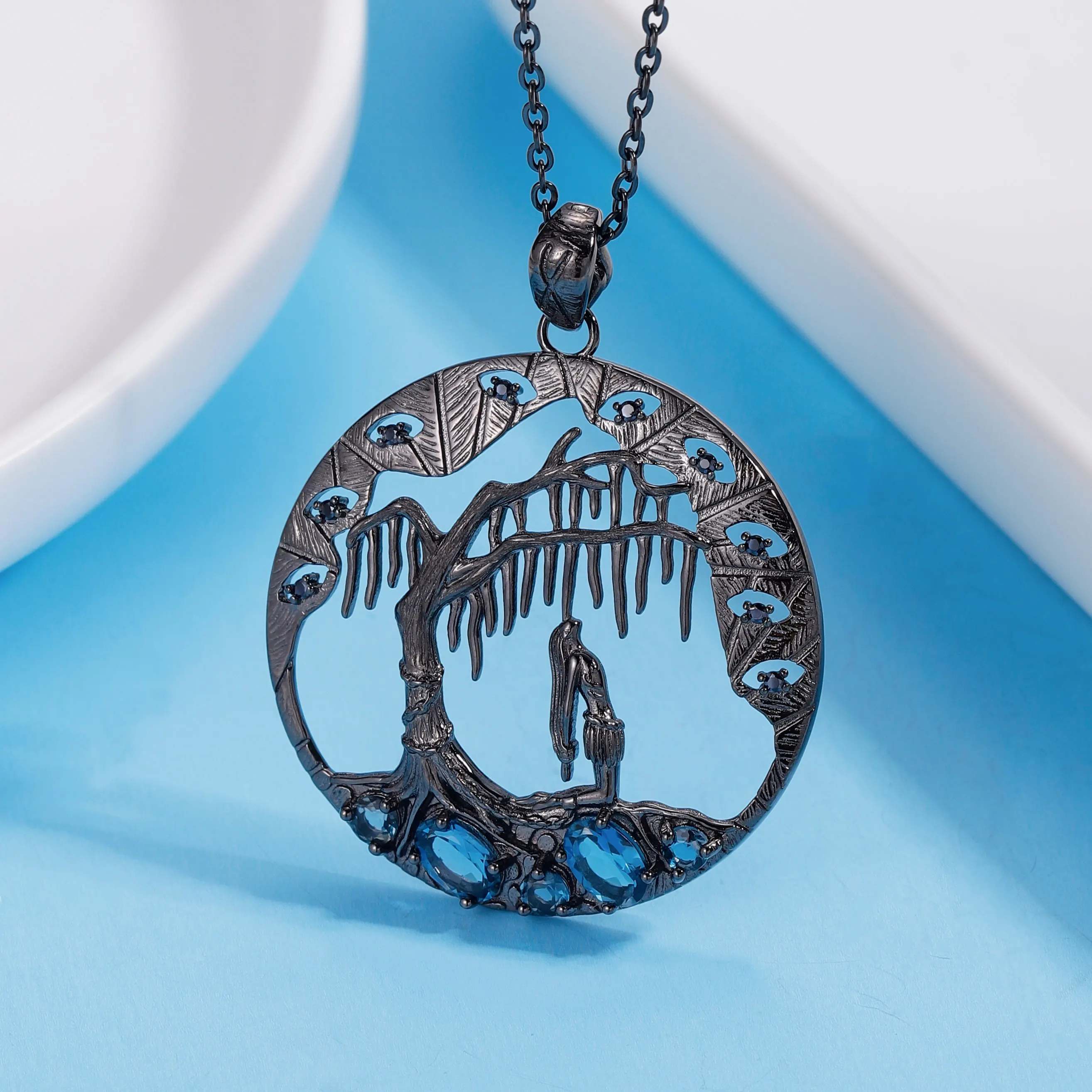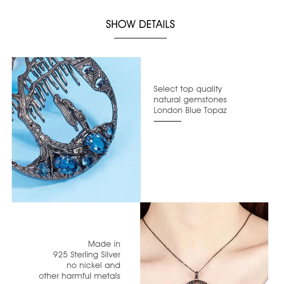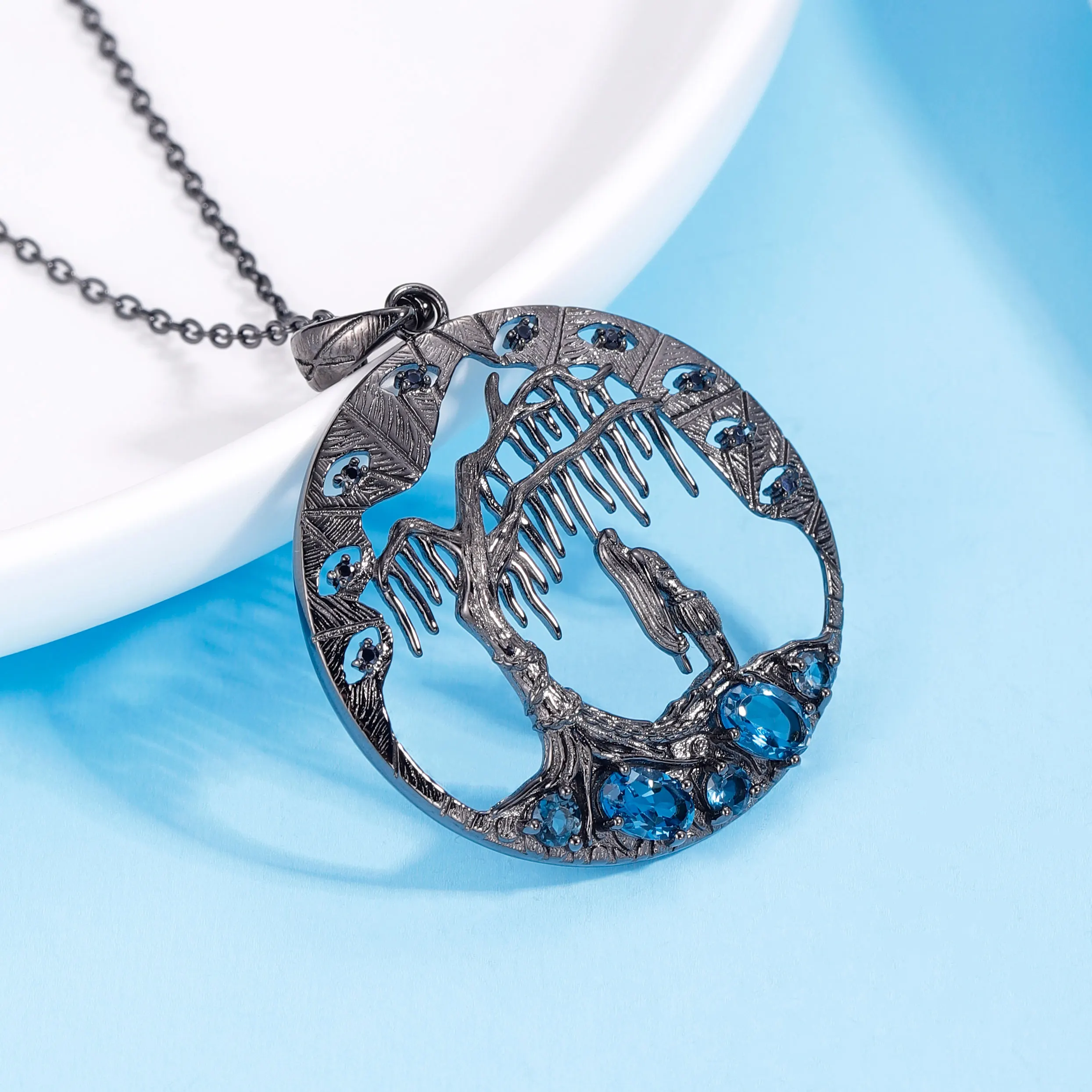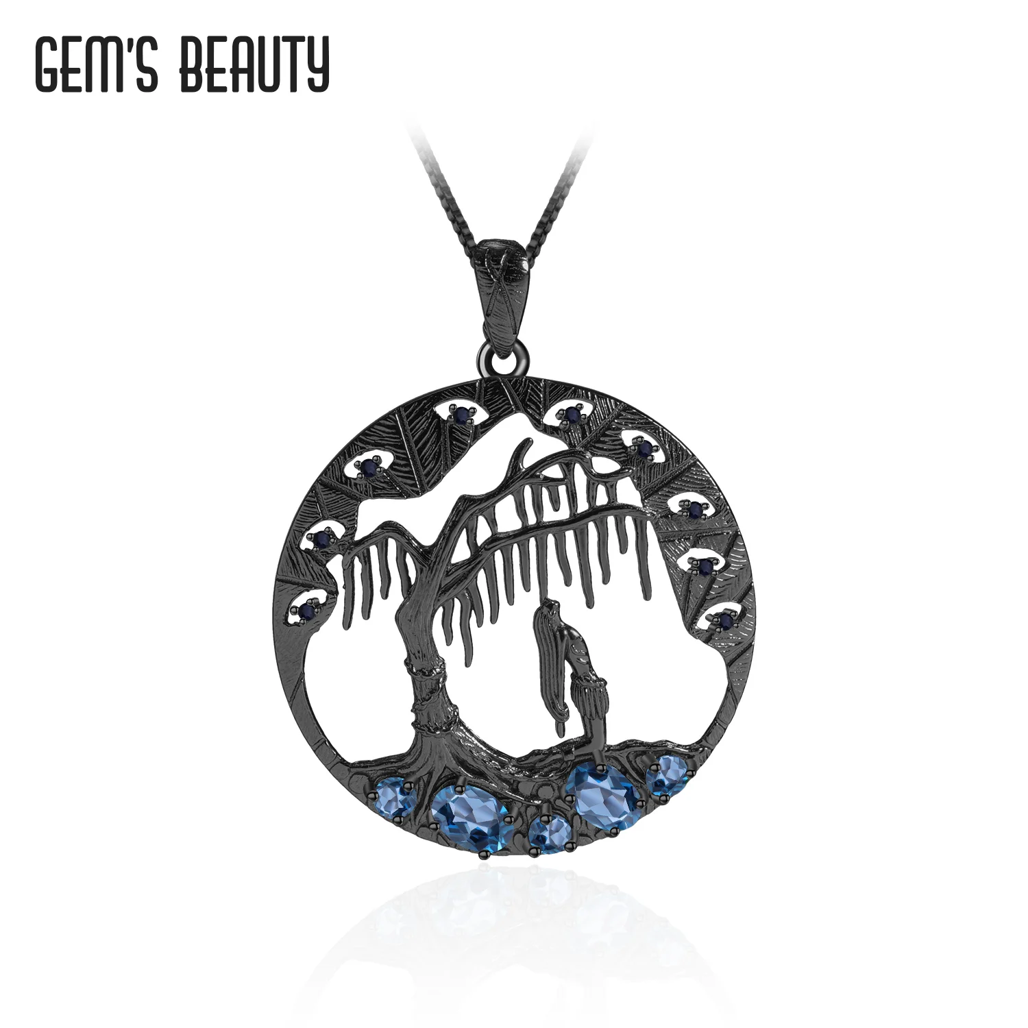 Женское ожерелье из серебра 925 пробы с натуральным овальным лондонским голубым топазом