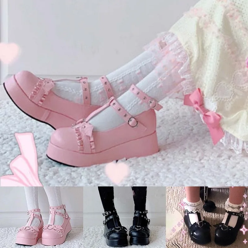 Туфли Lolita Kawaii обувь на платформе Loli девриана летучая мышь б...