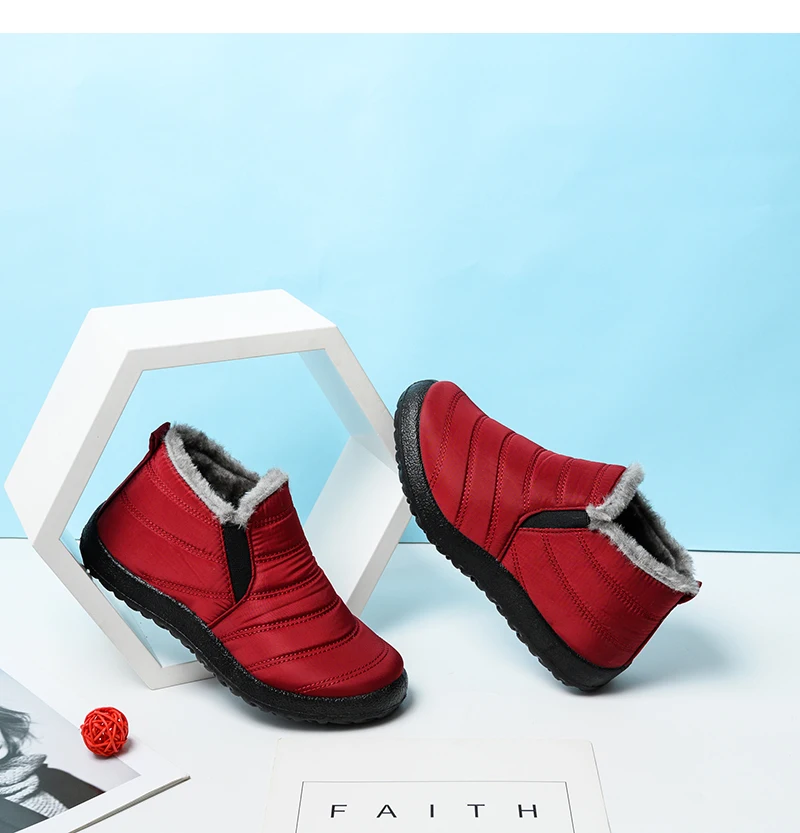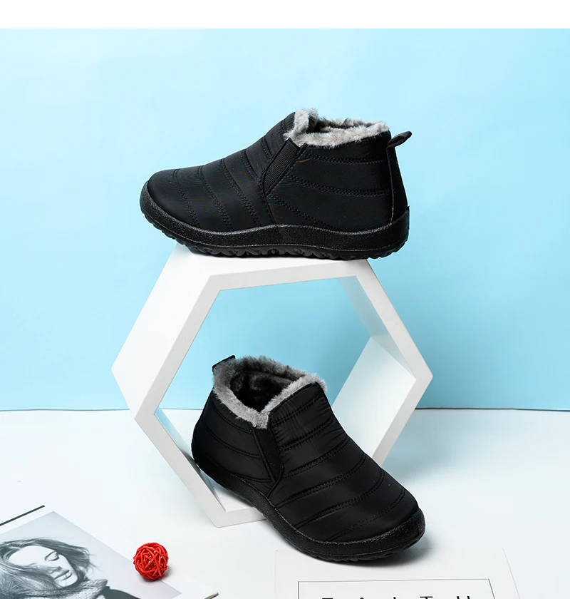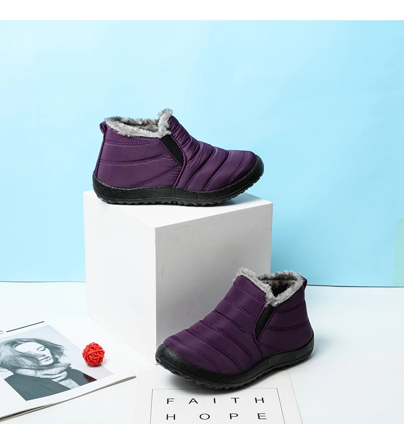 Женские кроссовки без шнуровки, плюшевые водонепроницаемые, теплая ...