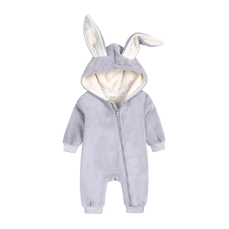 Одежда для новорожденных, комбинезоны, зимние теплые комбинезоны, утепленные бархатные комбинезоны, милые детские комбинезоны с капюшоном и кроличьими ушками