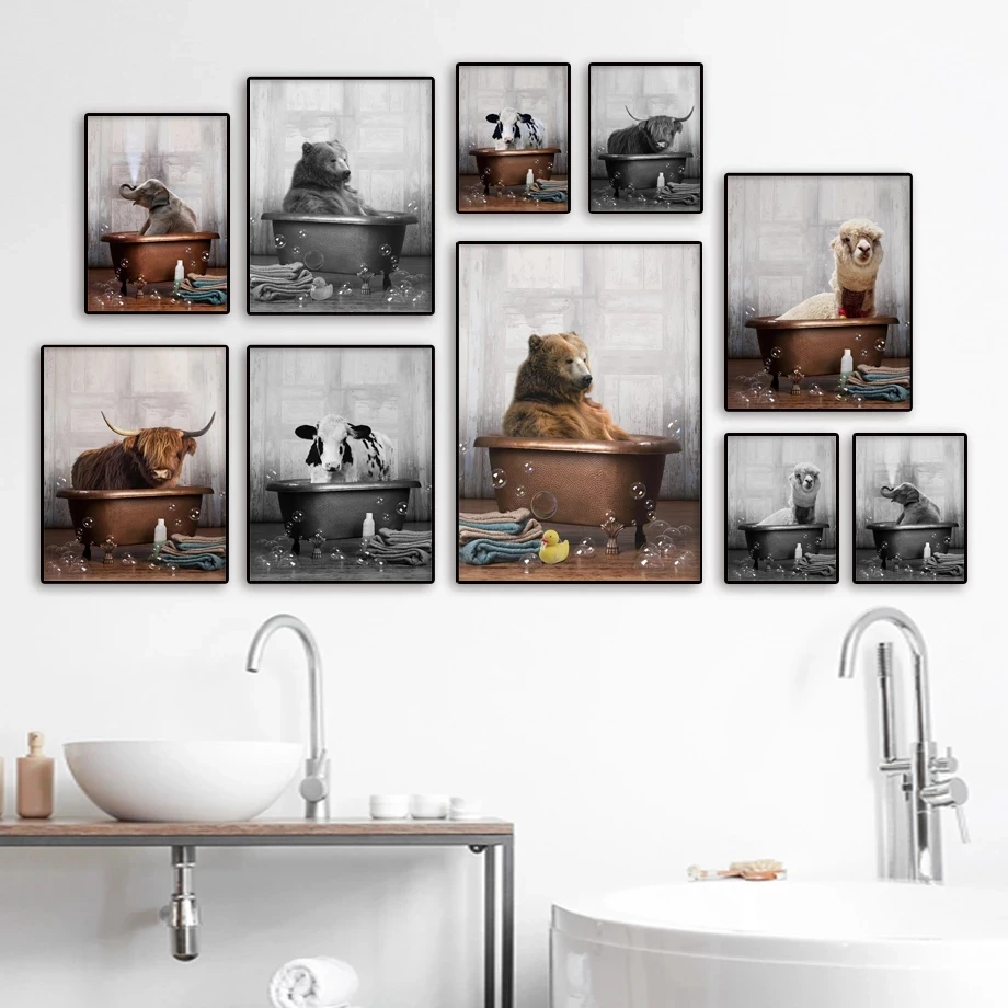Медведь Альпака корова слон душевая ванна настенная Картина на холсте скандинавские постеры и принты настенные картины для ванной домашний декор icon star icon star icon star icon star icon star