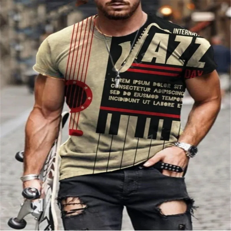 Футболка мужская с коротким рукавом и 3D-принтом музыкальной гитары...