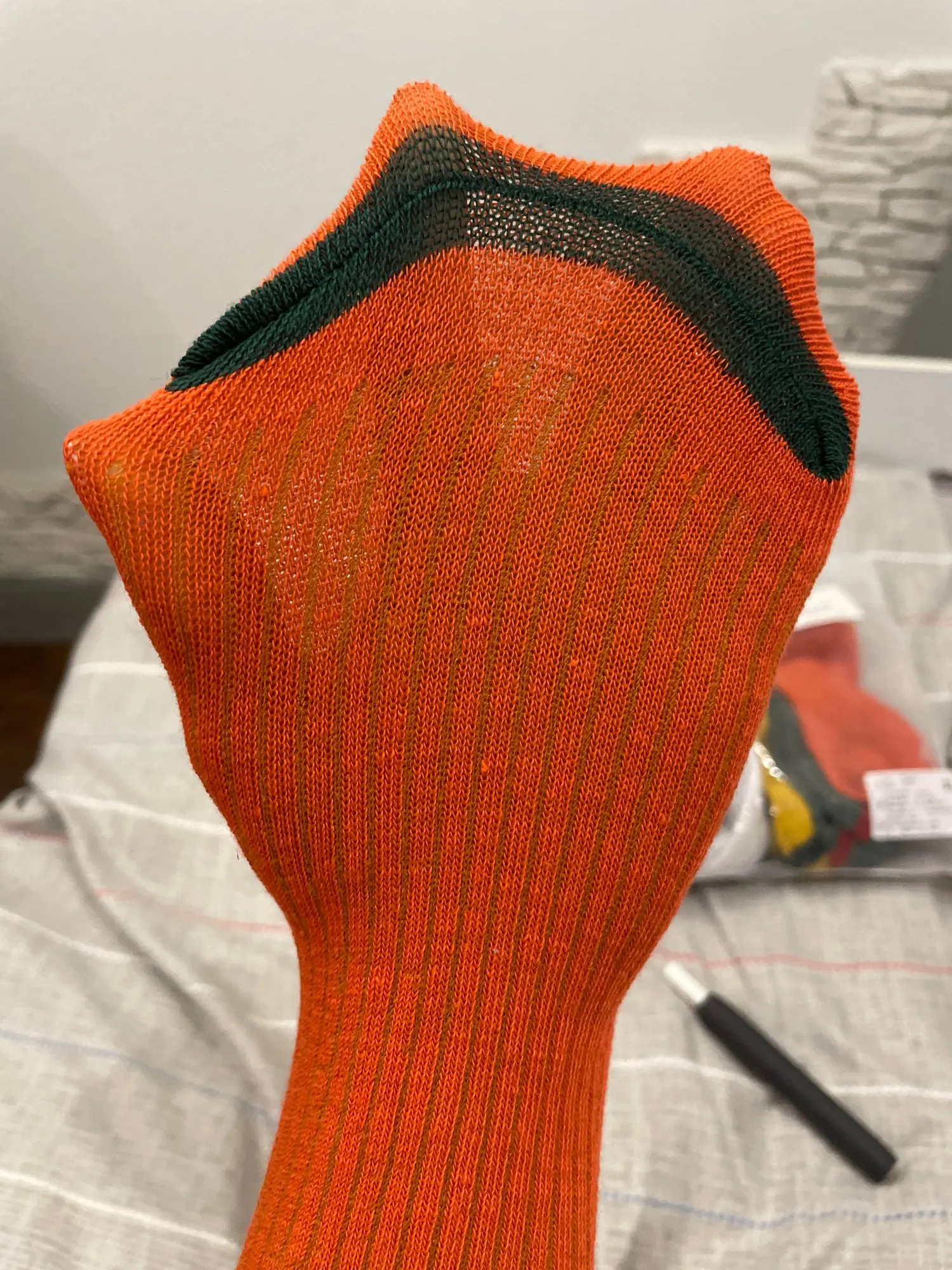 Пришли в пакете, который жаль выкидывать, с застежкой. Сами носки красивые, но на лето, осень. Сфоткала со всех сторон. Размер 35,36 ноги. Не носила, т.к. у нас зима уже. Думаю это хлопок с синтетикой. Ну такое. В магазине я бы не стала их покупать, люблю более плотные, хлопковые. Почему-то подумала, что они такие. На наше Сибирское лето норм в кроссовки.