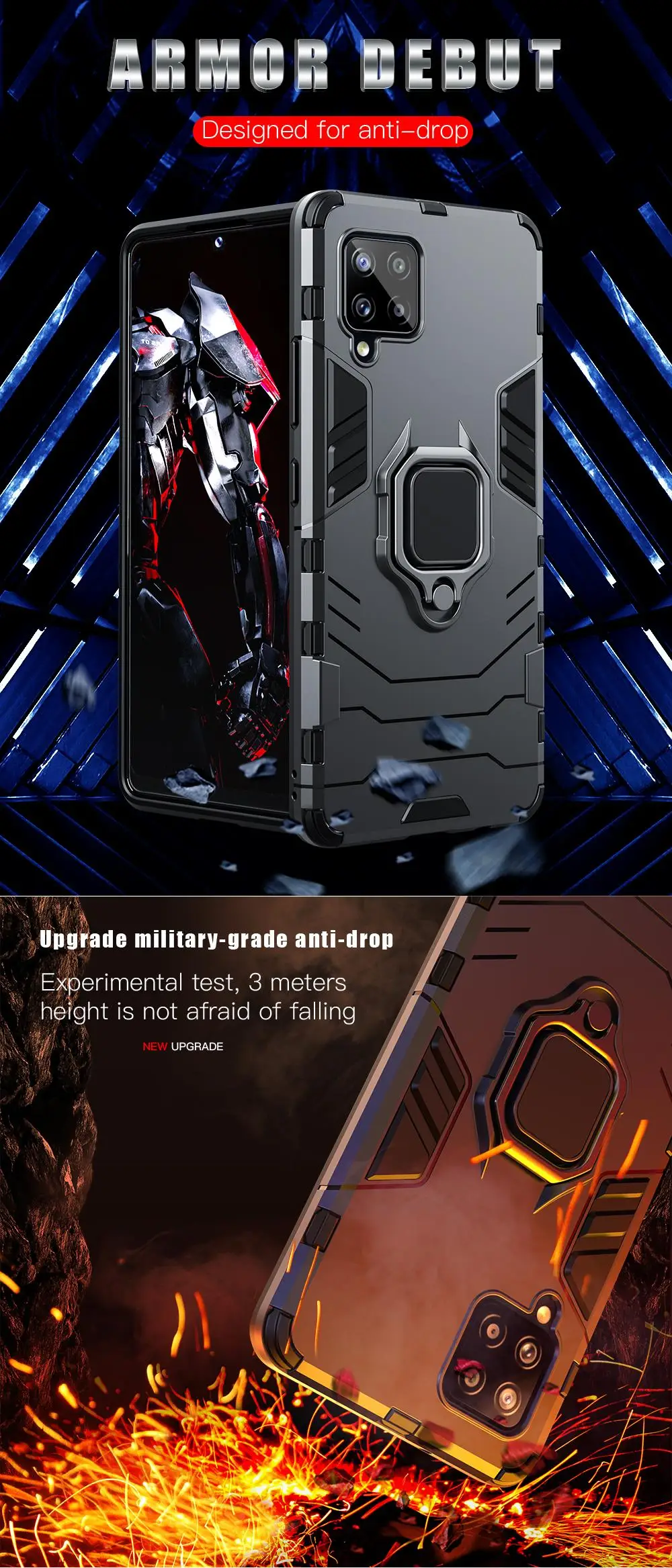Противоударный защитный чехол KEYSION для Samsung A22 A12 5G A82 A03S M32 M62 M12 с кольцом и подставкой для Samsung Galaxy F52 F62 F12