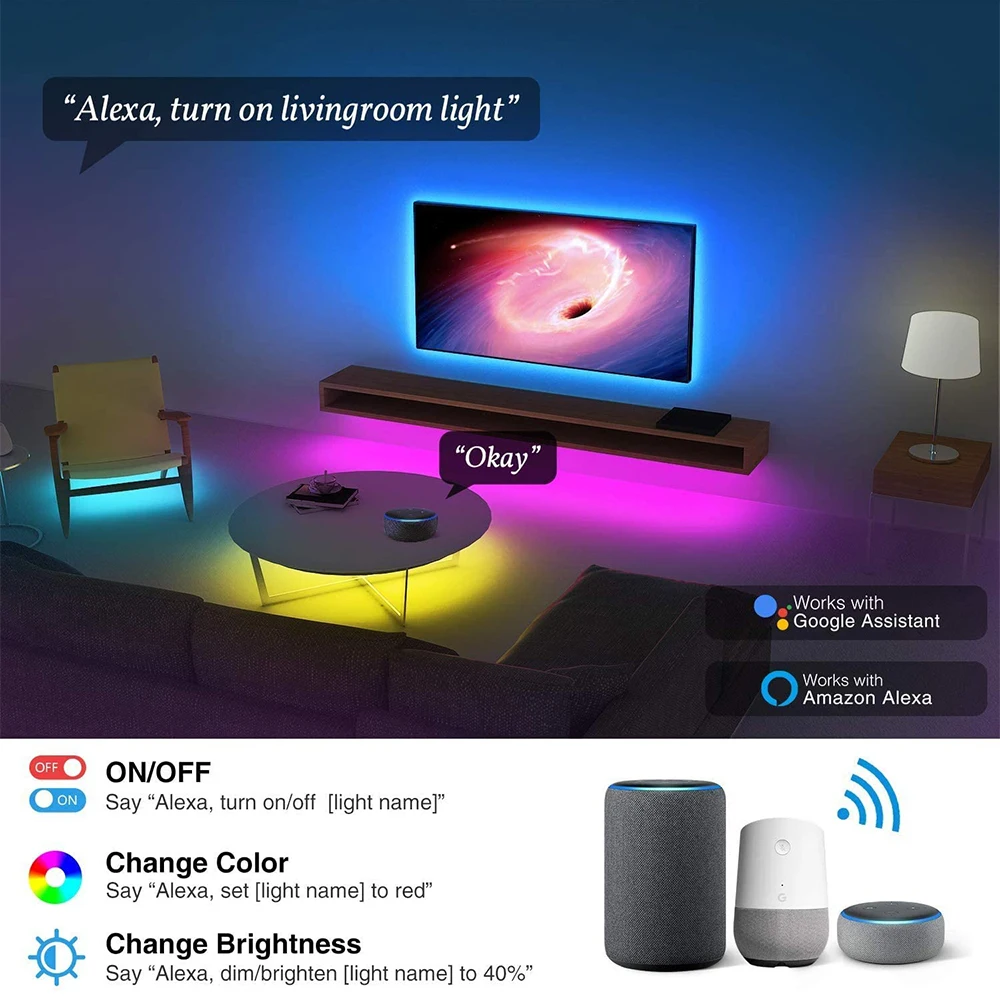 Светодиодная лента Alexa Wifi Голосовое управление Tuya умная лампа 12 В Rgb 5050 не водонепроницаемая лампа Гибкая лампа для дома