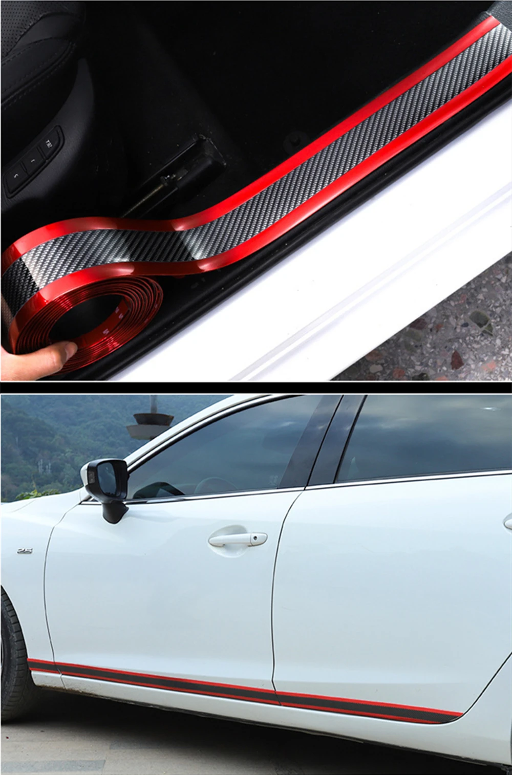 Автомобильные наклейки, защита от царапин, протектор порога, Резиновая полоса, углеродное волокно, защитная пленка для бампера, лента, автомобильные аксессуары