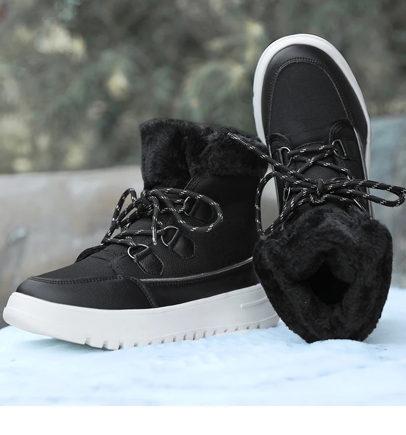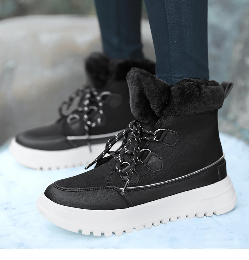 Женские ботинки на меху, зимние, черные, для прогулок, на платформе