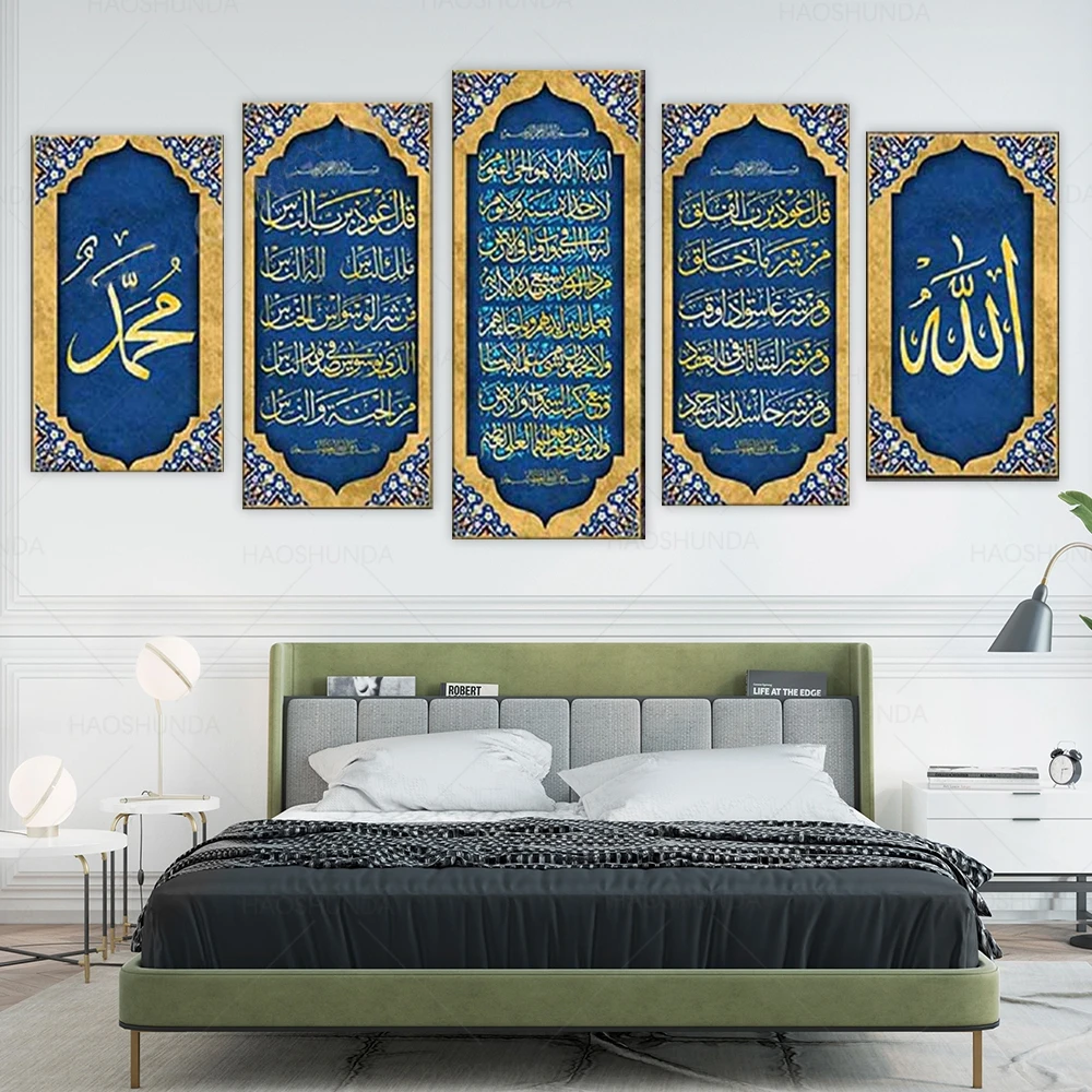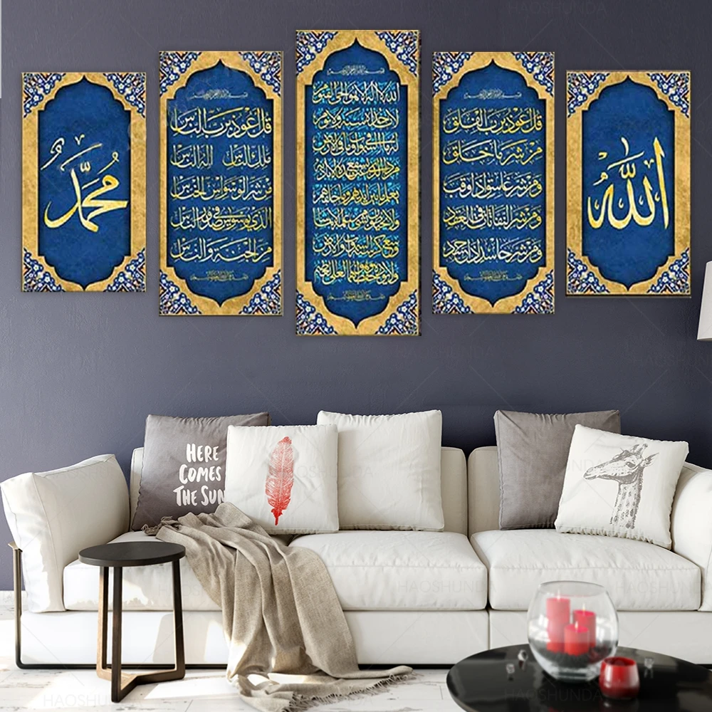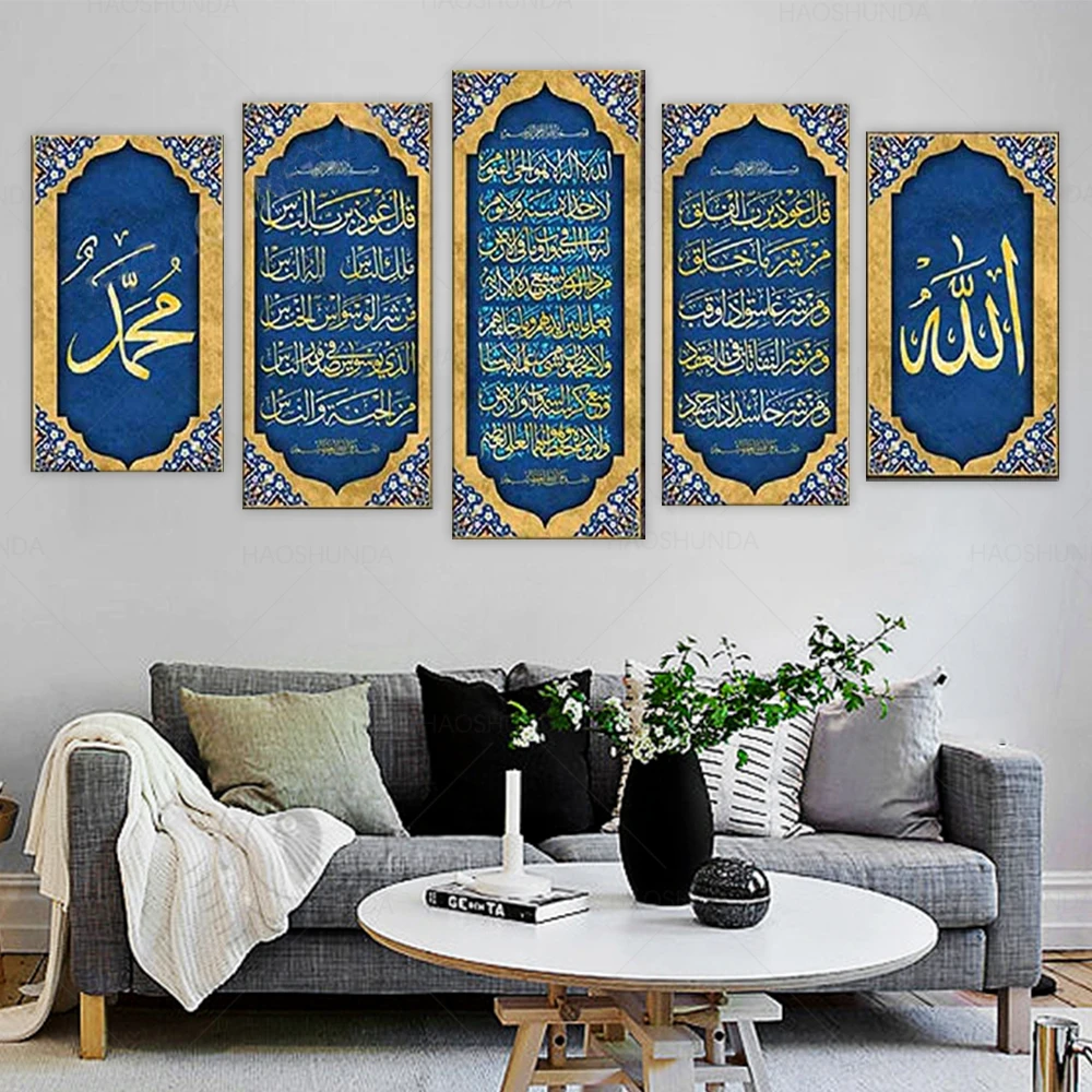 Ayatul Kursi, Сура аль-фалак и Al NAS, большой исламский холст настенное искусство, 5 шт. исламский художественный холст, уникальный дизайн холст стены Ar