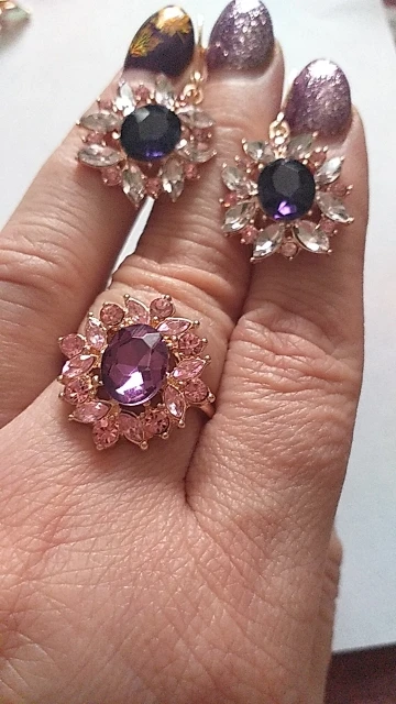 Они очень дешевые и выглядят дешево. Они также не полностью совпадают с изображениями. Это тонкое кольцо и один цветок. На рисунке верхняя часть имеет маленькие белые кристаллы. Мои серьги не содержат кристаллов над цветком. Я бы не рекомендовал его.