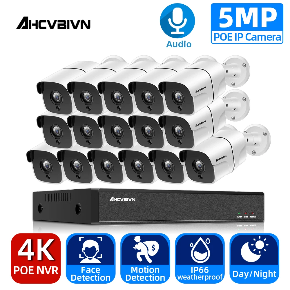 H.265 16-канальная система видеонаблюдения s POE NVR 4k Ultra HD Водонепроницаемая 5.0MP аудио IP-камера безопасности Система видеонаблюдения набор 8 каналов