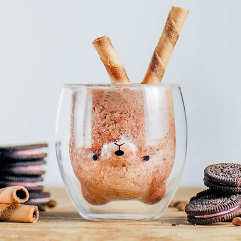 • Название продукта: двойная кофейная чашка с милым медвежонком • цвет изделия: прозрачный • Материал изделия: Боросиликатное Стекло • термостойкость: -20 ° C - 150 ° C • Емкость: приблизительно 250 мл • Размер продукта (прибл.): горлышко бутылки Диаметр: 9,5 см, горлышко бутылки Высота: 9 см, нижняя часть флакона: 7 см • Вес изделия: около 140 г