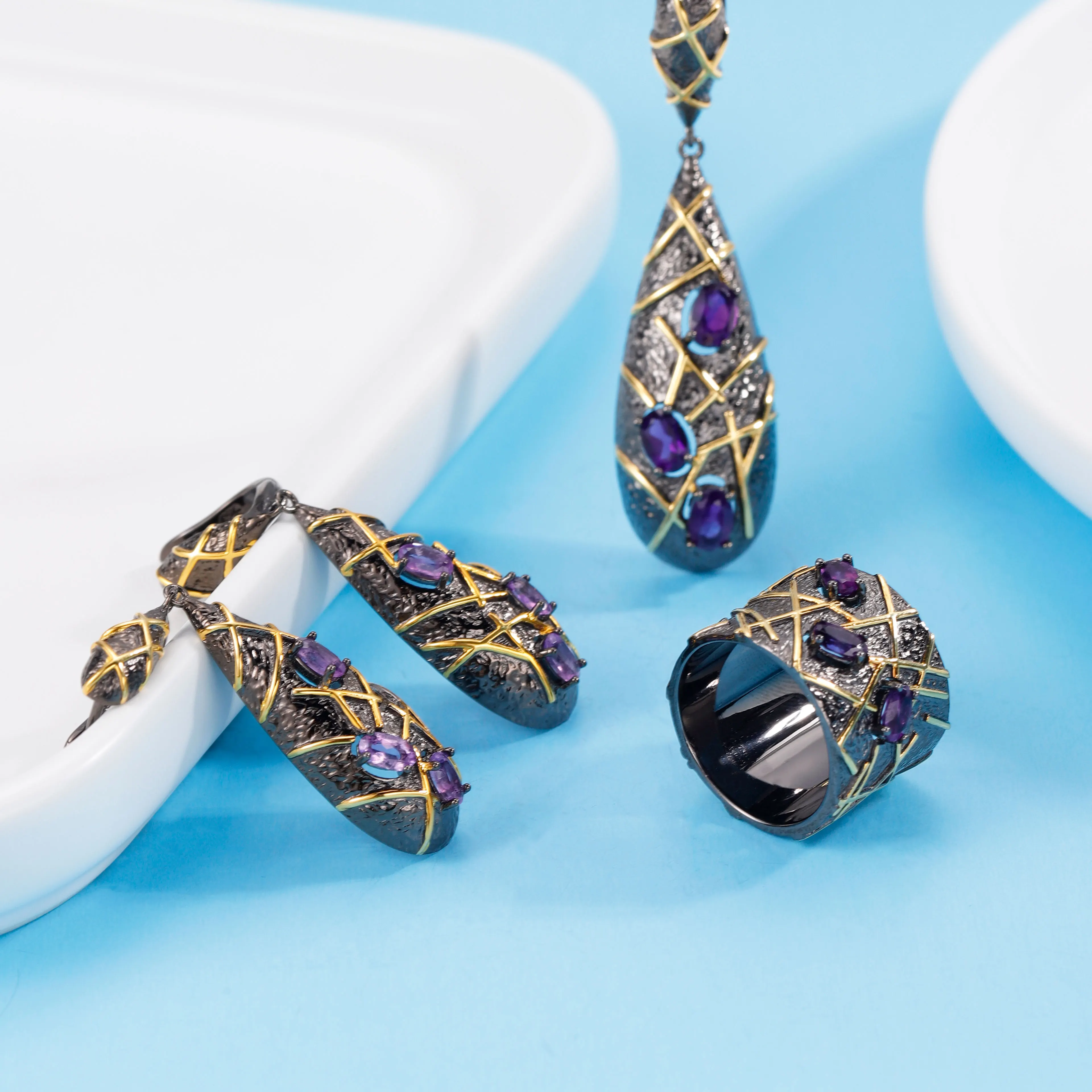 Женское кольцо из серебра 925 пробы с натуральным аметистом