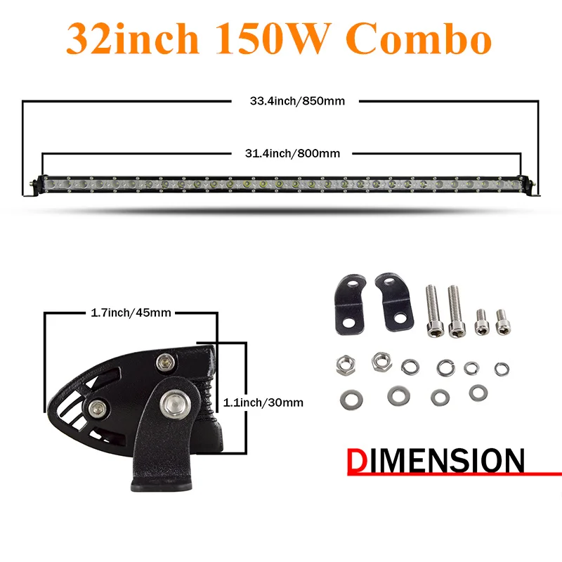 7, 13, 20, 25, 32, 38 дюймов, тонкая Однорядная светодиодная световая панель, комбинисветодиодный Светодиодная панель для вождения по бездорожью, 12-24 В для автомобиля, грузовика, внедорожника, прицепа УАЗ