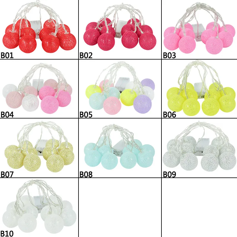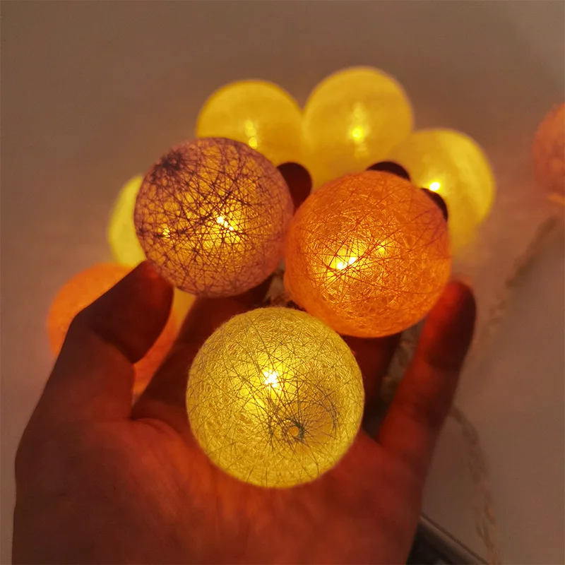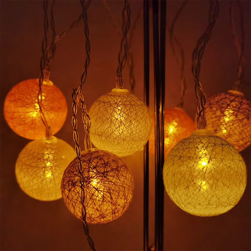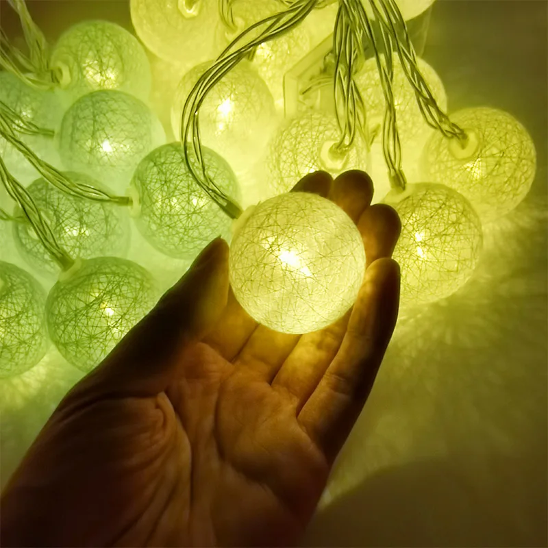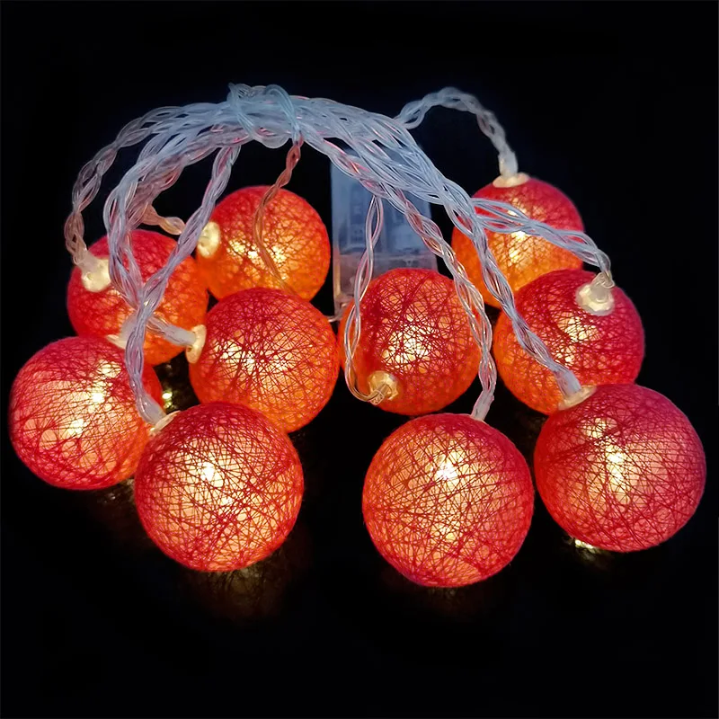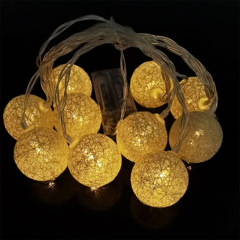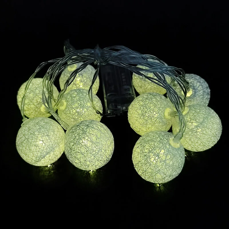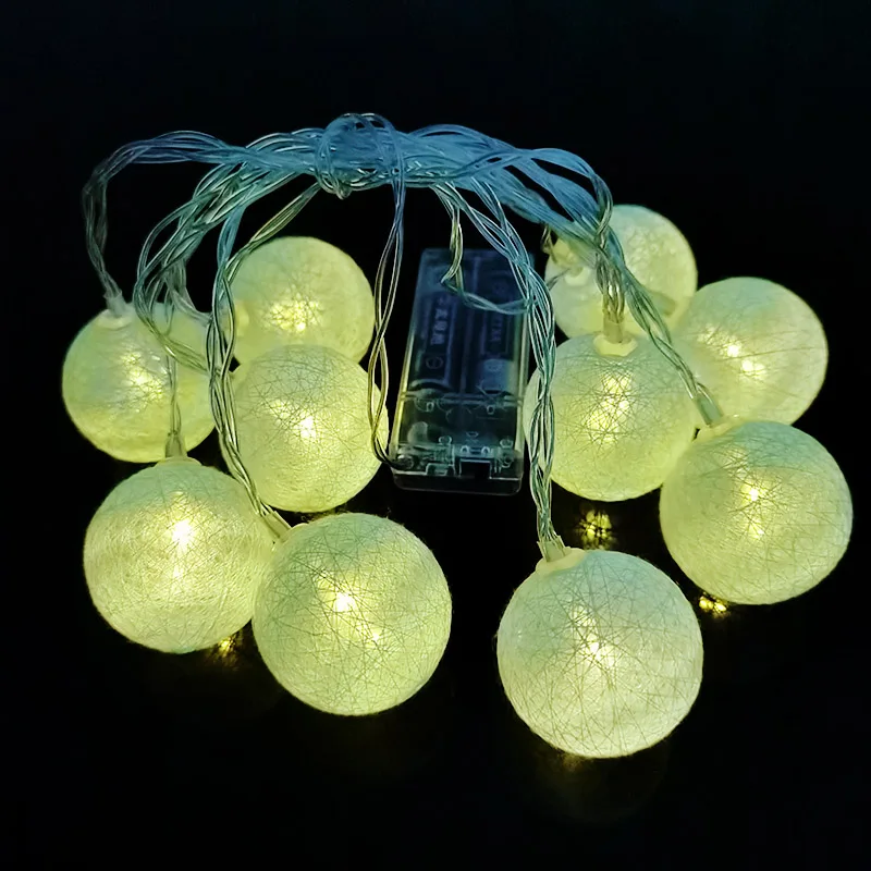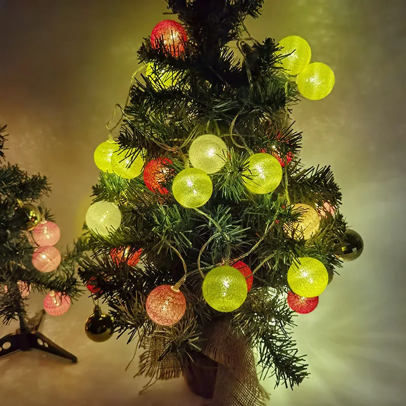Гирлянда из хлопковых шариков 2 м, светодиодная Рождественская Декоративная гирлянда, гирлянсветильник с разноцветными круглыми шариками, скасветильник освещение для рождественской елки, украшения для дома