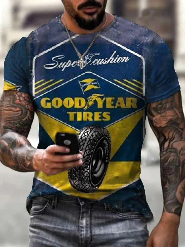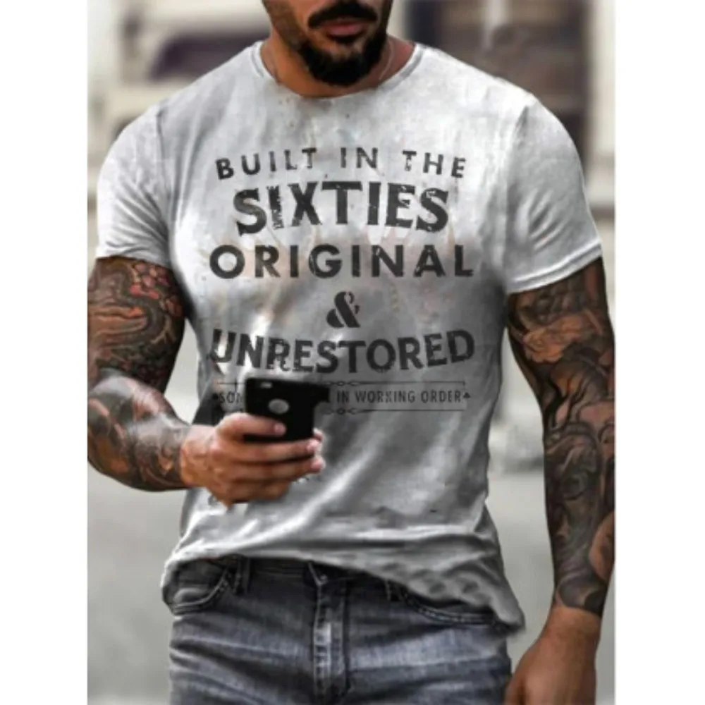 Мужская футболка с короткими рукавами и принтом в ретро-стиле, удоб...